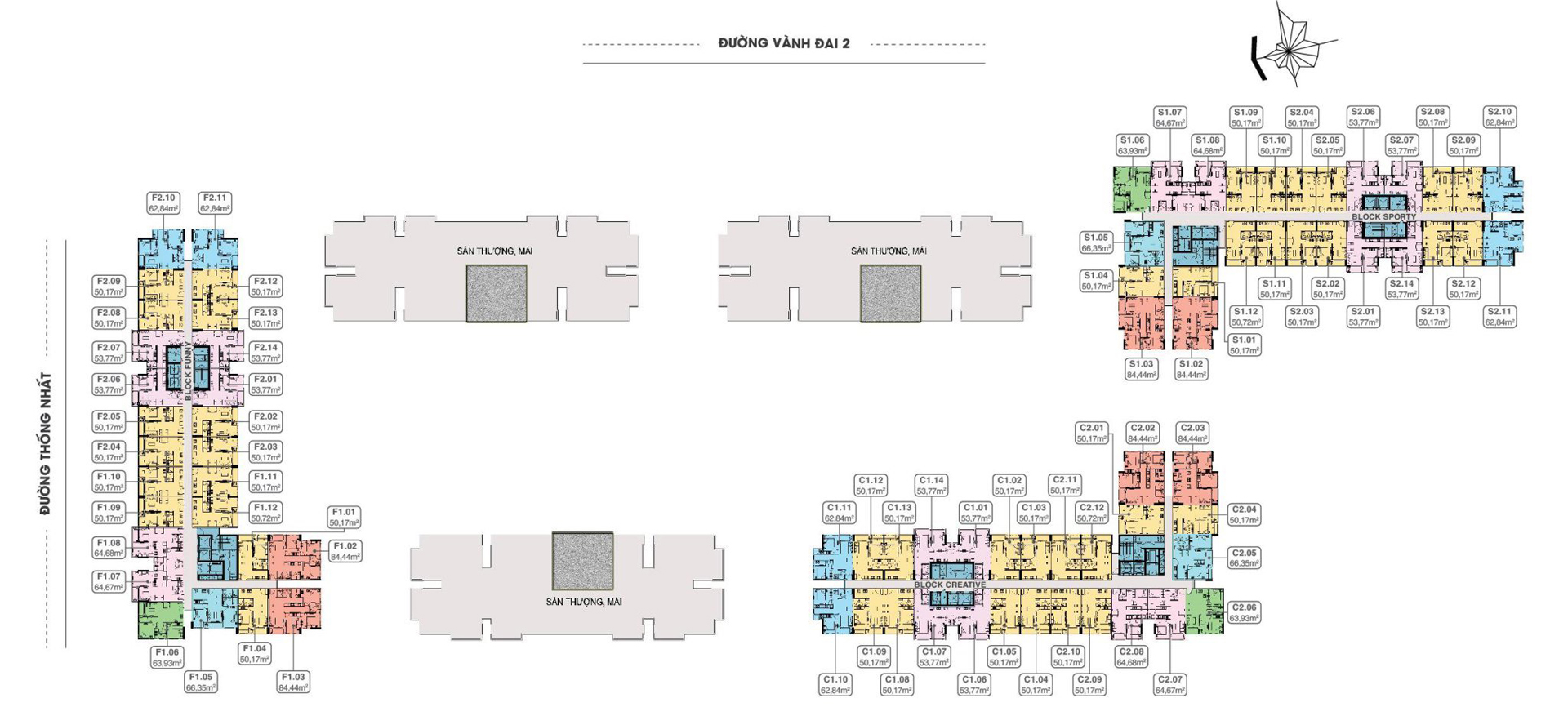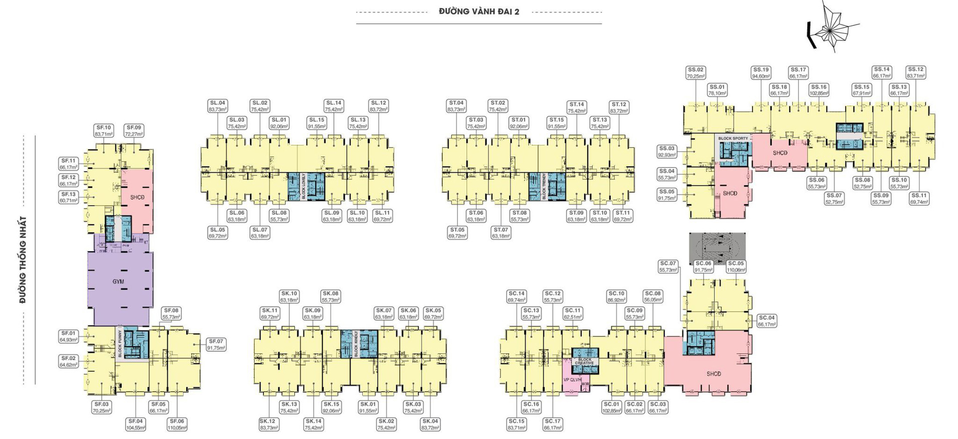 căn hộ (50 – 135 m²), shophouse (100 – 185 m²) |