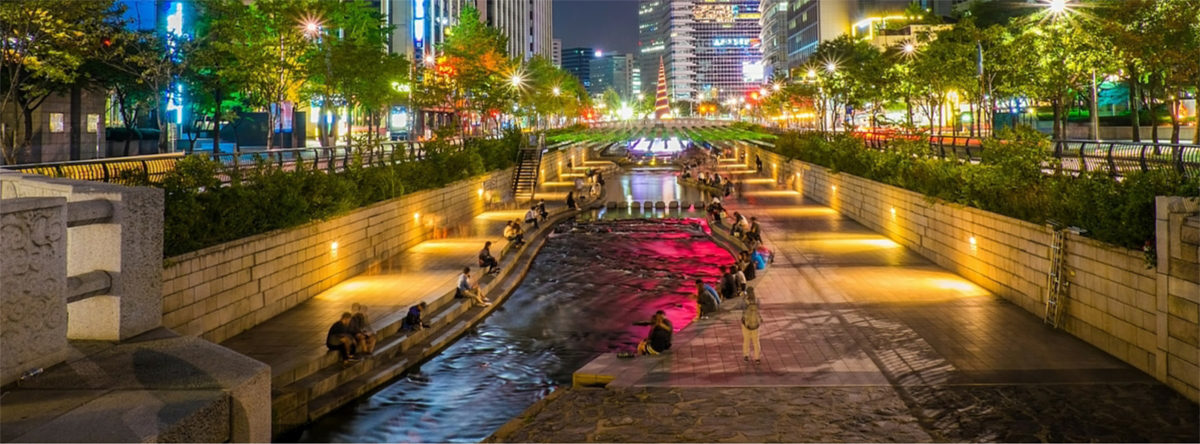 Lấy cảm hứng từ vẻ đẹp của suối nhân tạo Cheonggyecheon Hàn Quốc, dòng sông lười trải dài như một bức tranh huyền ảo, mang theo luồng sinh khí và vượng lành cho cả quần thể. Nơi du khách thông dong tản bộ trên con đường thơ mộng hay dừng chân, ngồi nghỉ, tán ngẫu chuyện trò bên bờ sông.