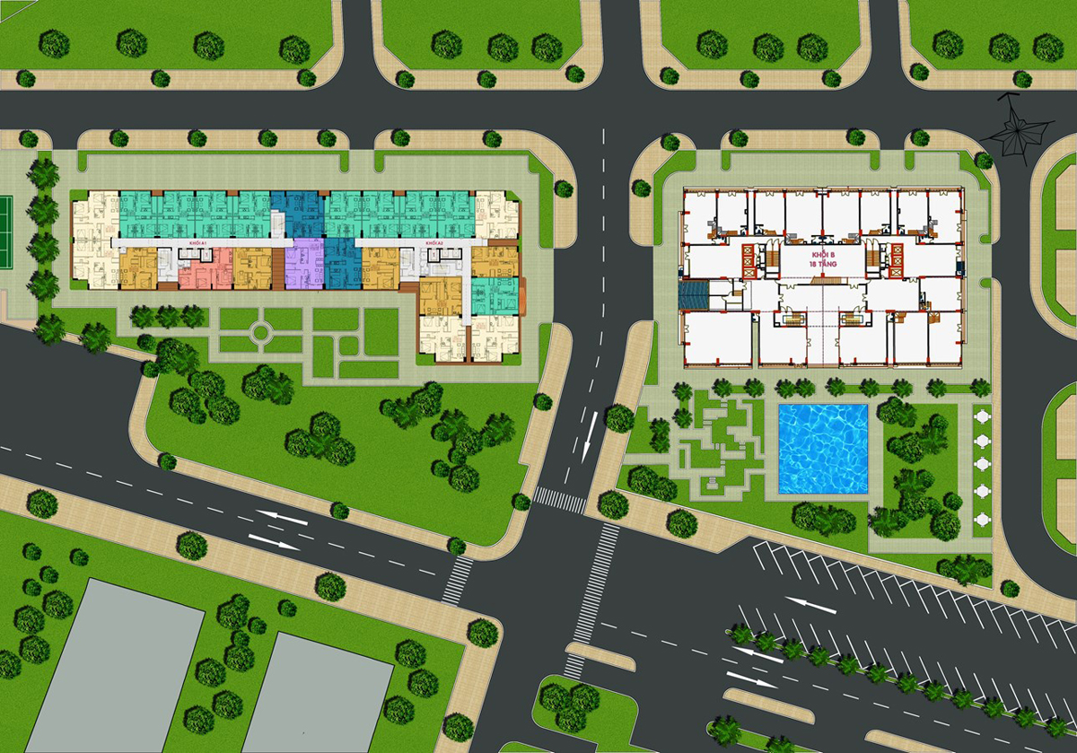 2 block, cao 16 tầng trong đó có 2 tầng hầm, 2 tầng trung tâm thương mại |