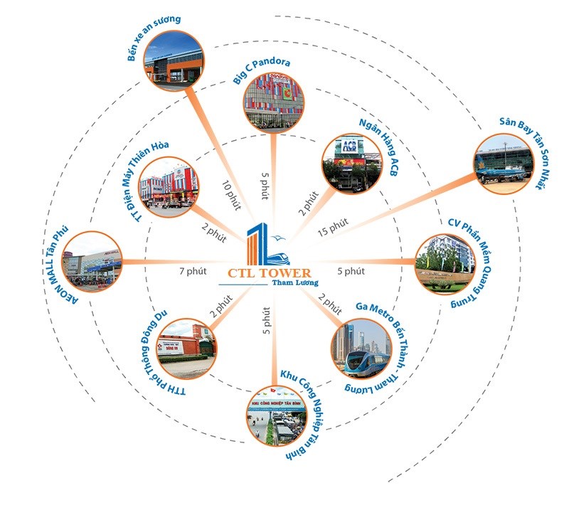 Chung cư CTL Tower Quận 12: ✓ Cách nhà ga vài bước chân ✓ Cách cầu Tham Lương 1 km ✓ Cách nhà ga mới sân bay Tân Sơn Nhất 2 km ✓ Cách Quốc lộ 1A 2 km ✓ Cách ngã tư An Sương 3 km ✓ Cách Quận 1 8 km