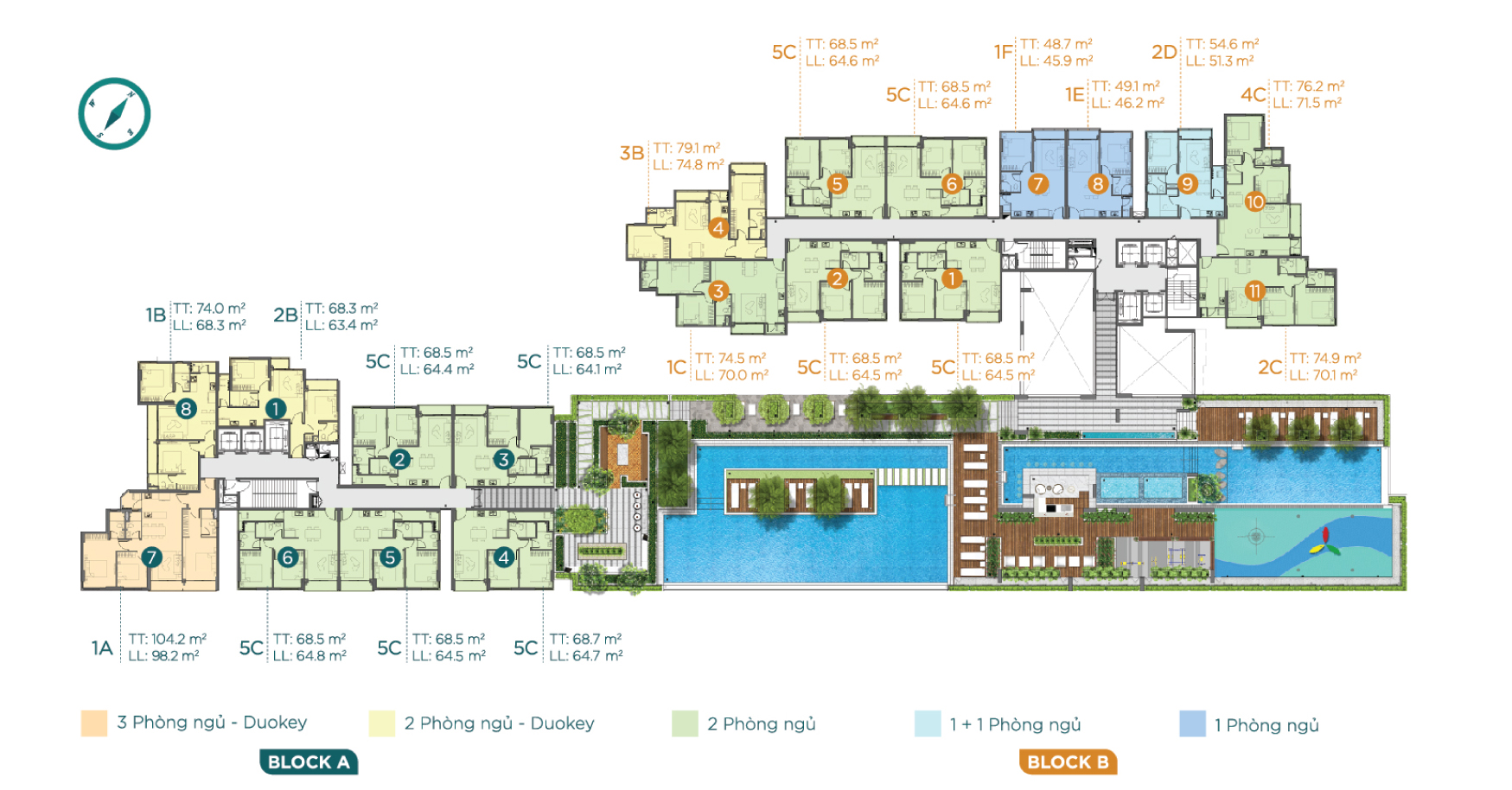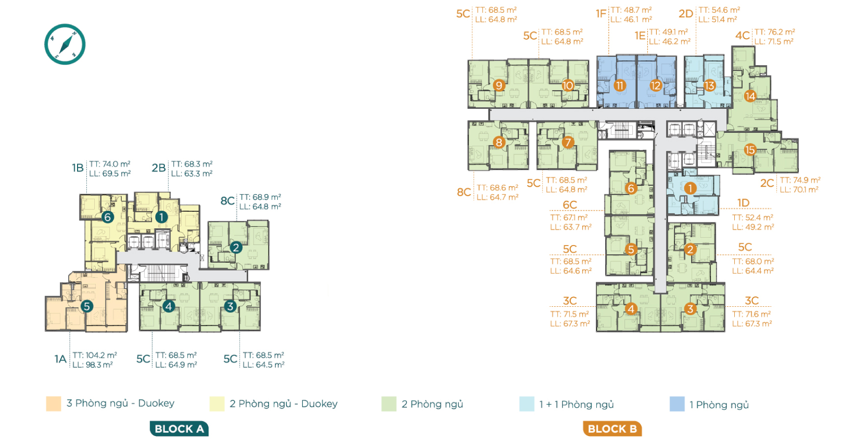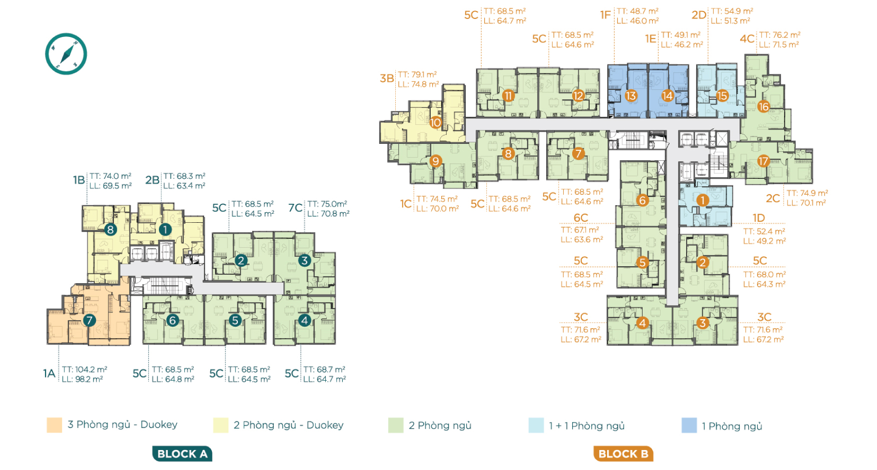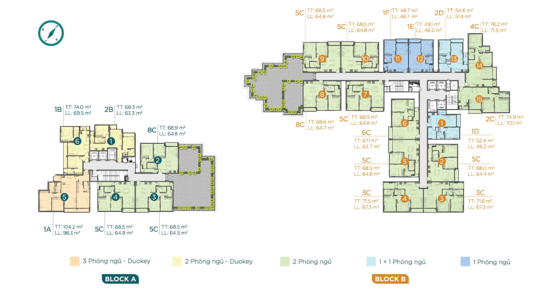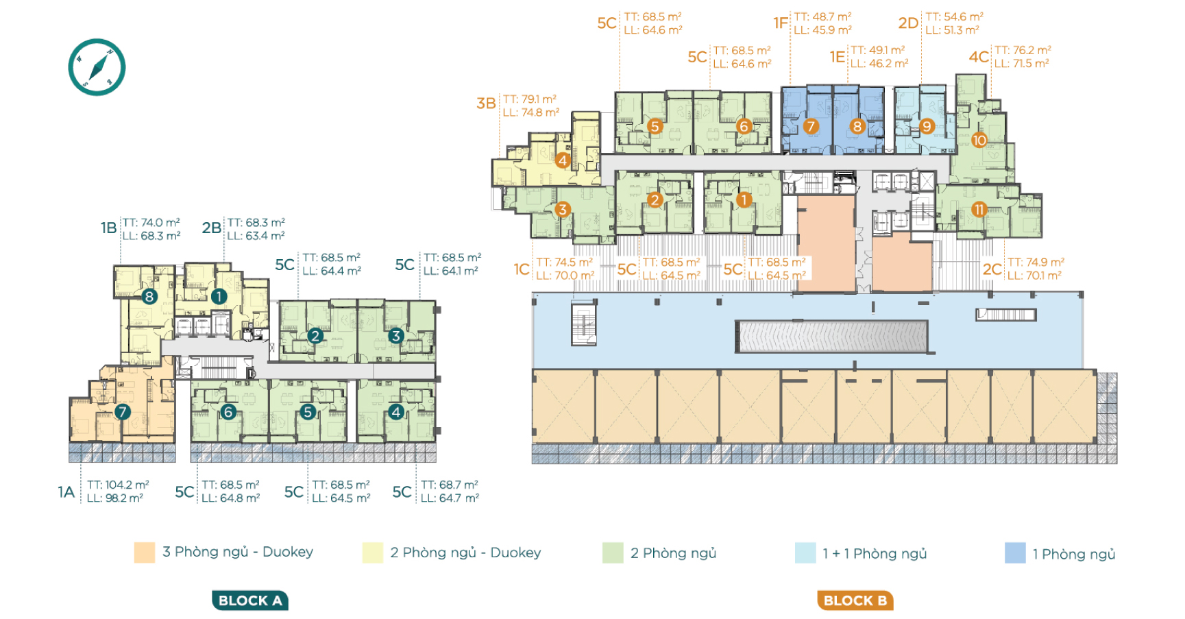 2 block – cao 18 tầng (2 tầng hầm, 3 tầng TTTM) |