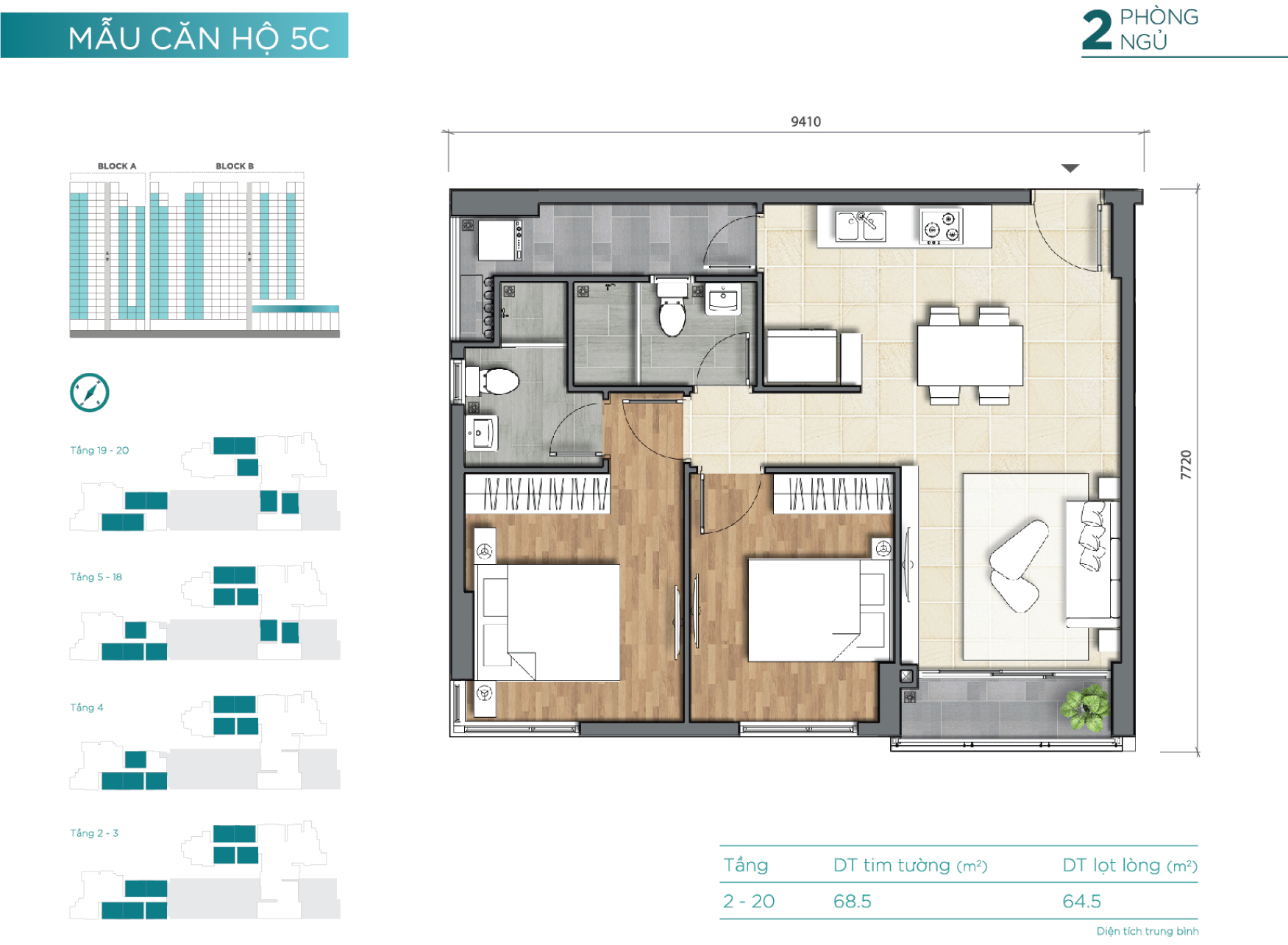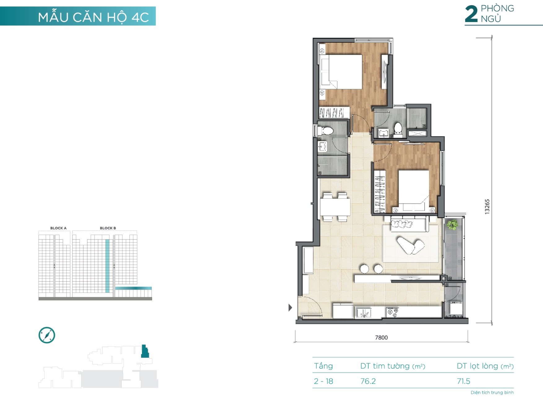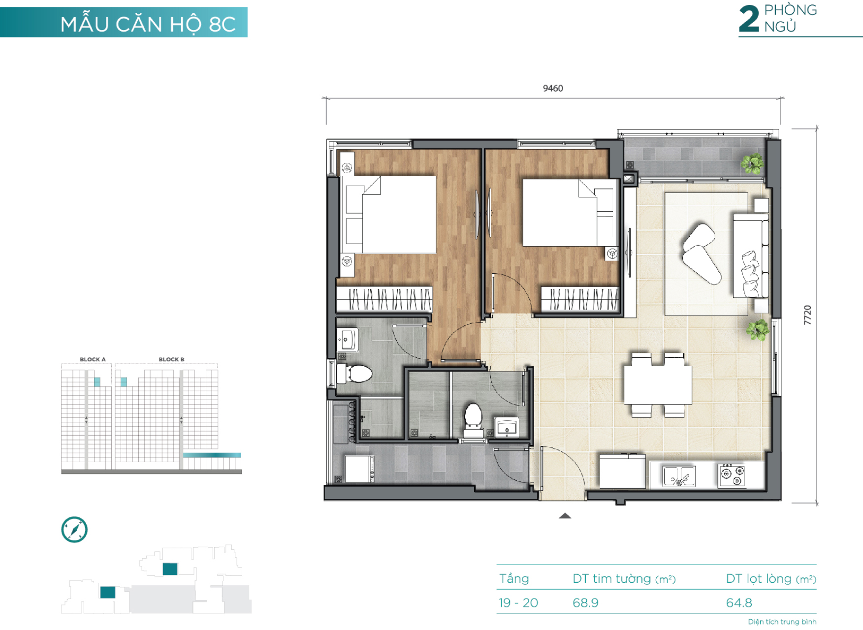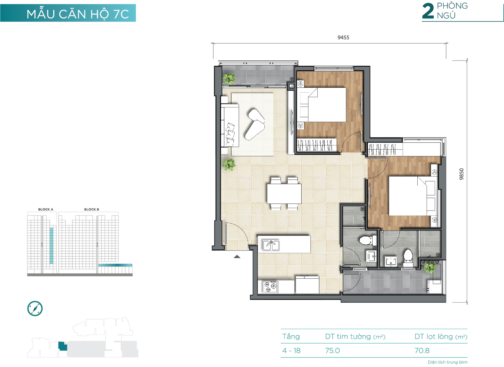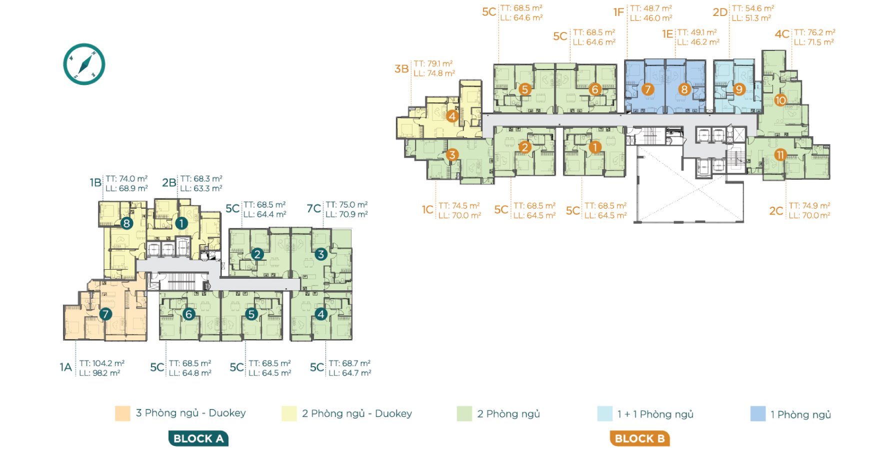 2 block – cao 18 tầng (2 tầng hầm, 3 tầng TTTM) |