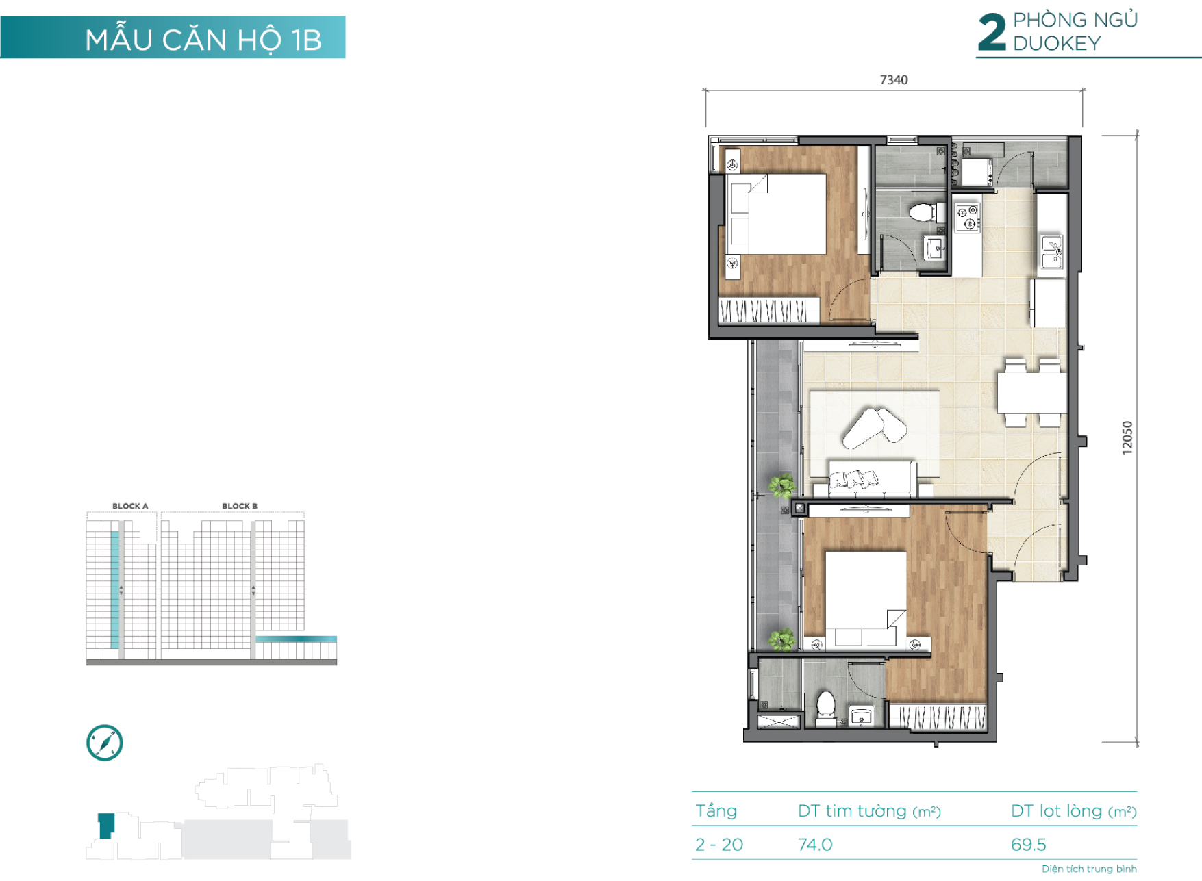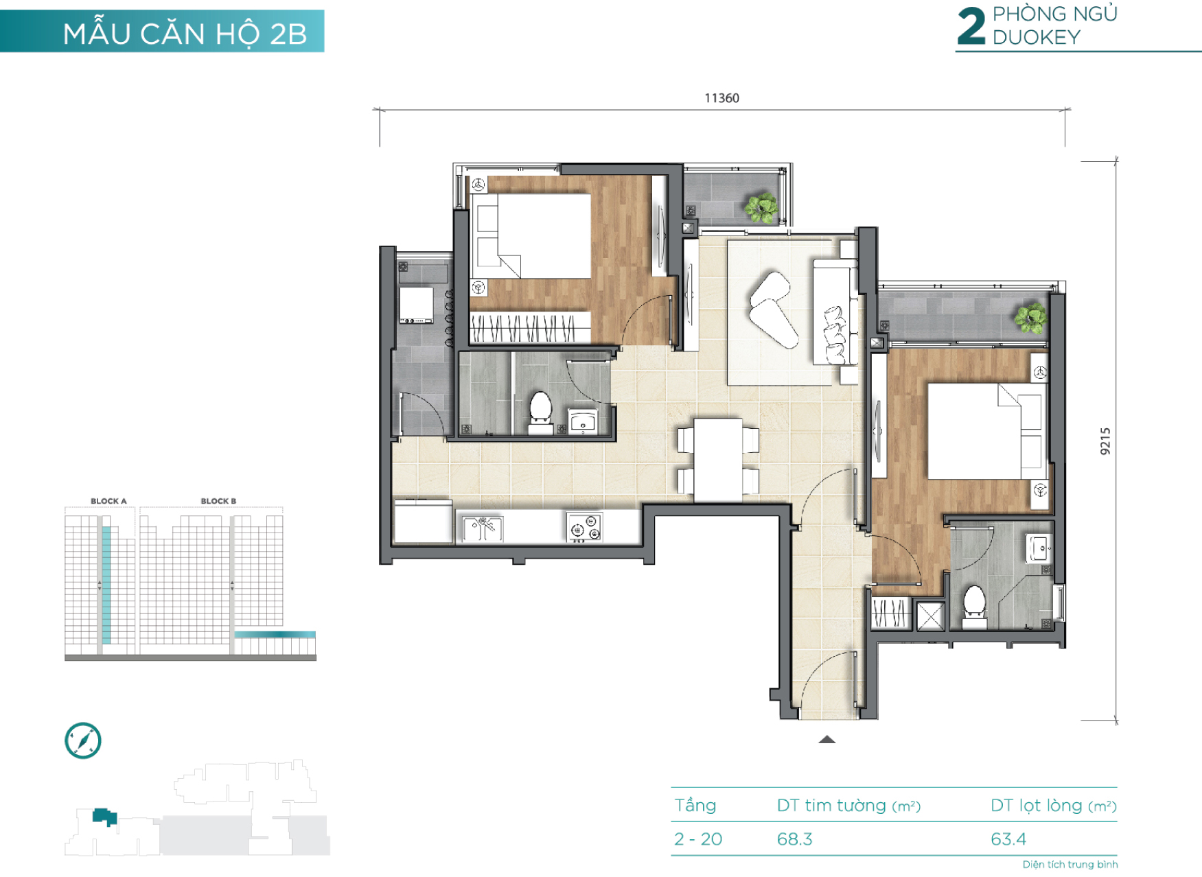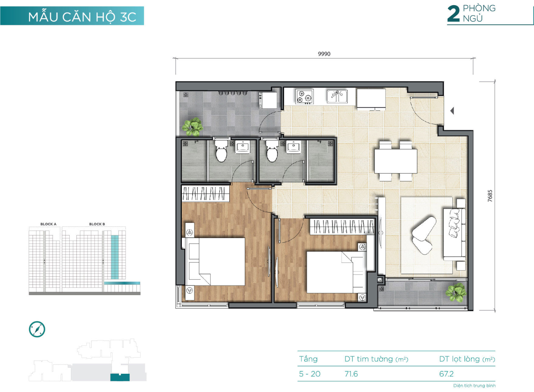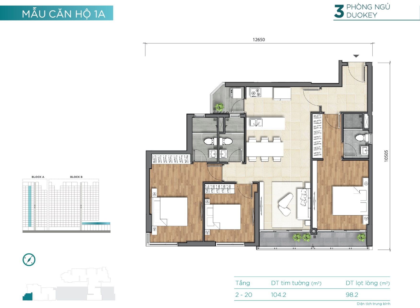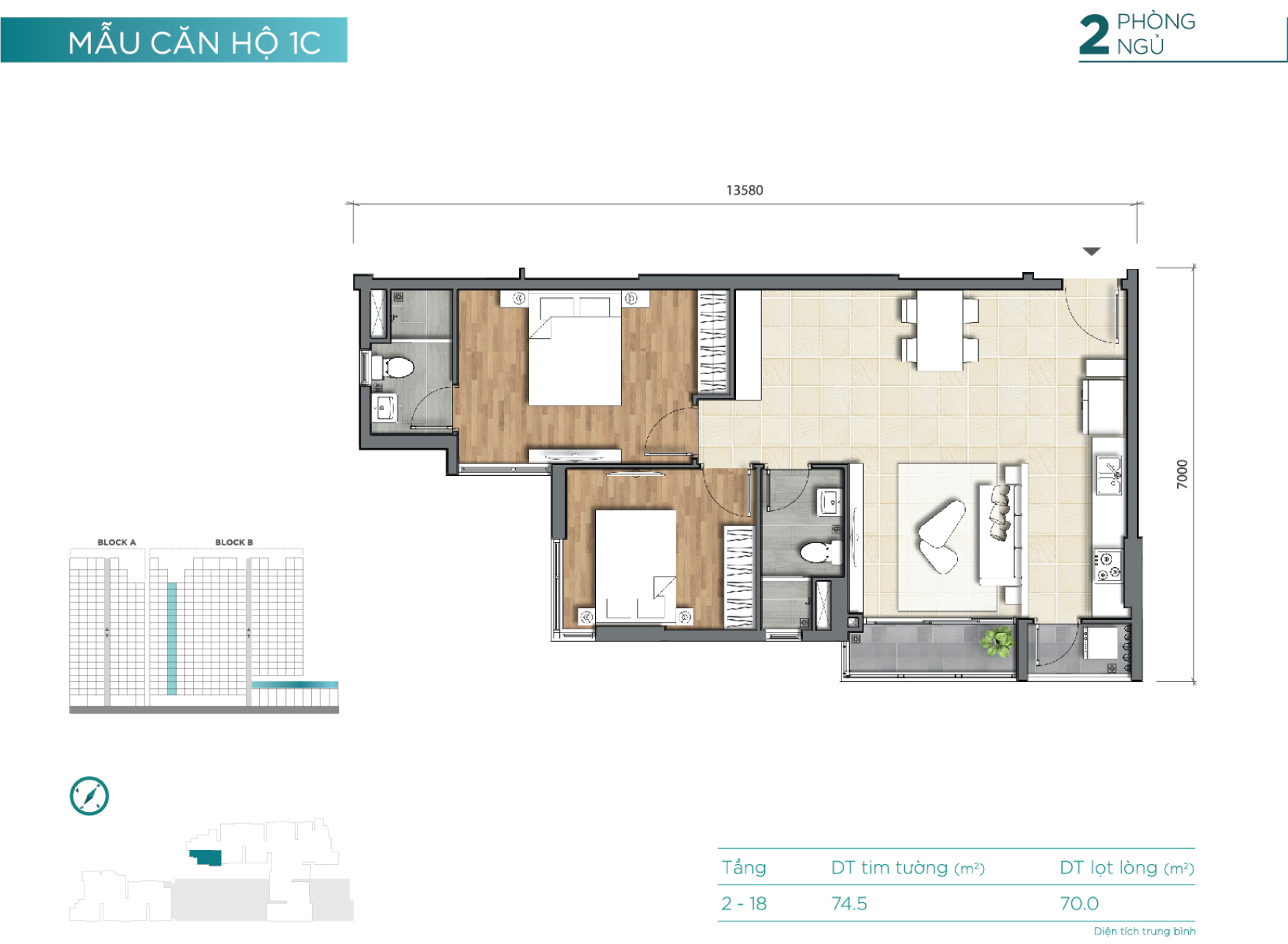 2 block – cao 18 tầng (2 tầng hầm, 3 tầng TTTM) |