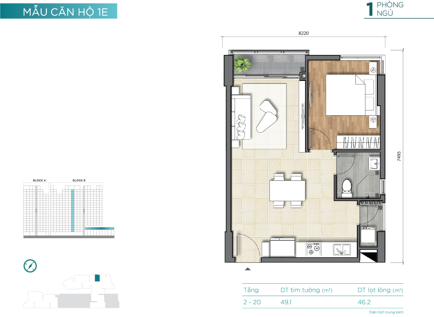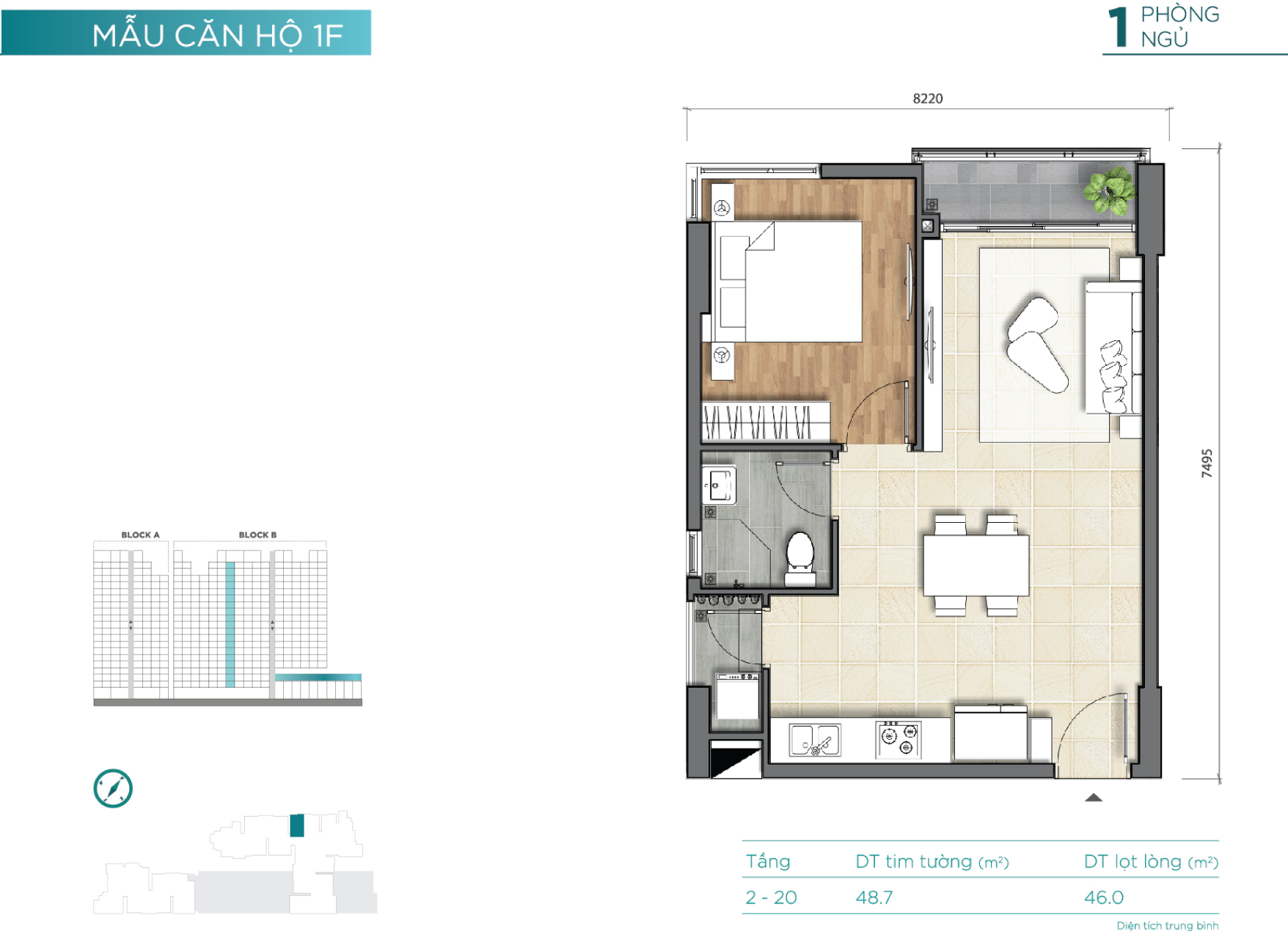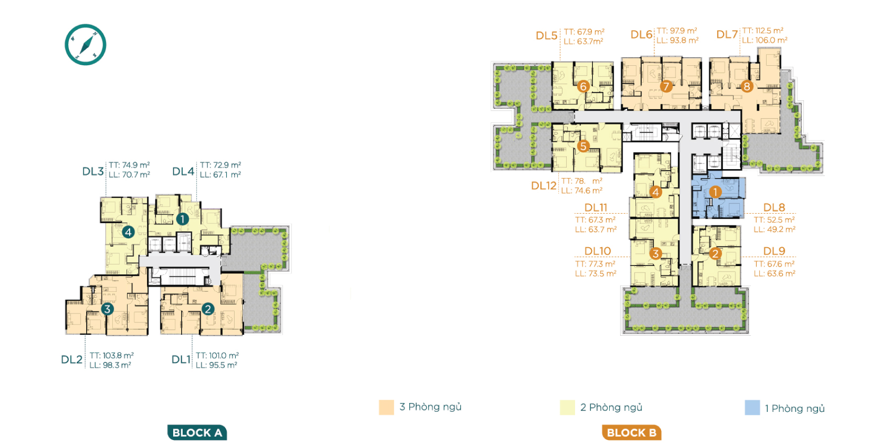 46 – 100 m² (1 phòng ngủ – 3 phòng ngủ) |