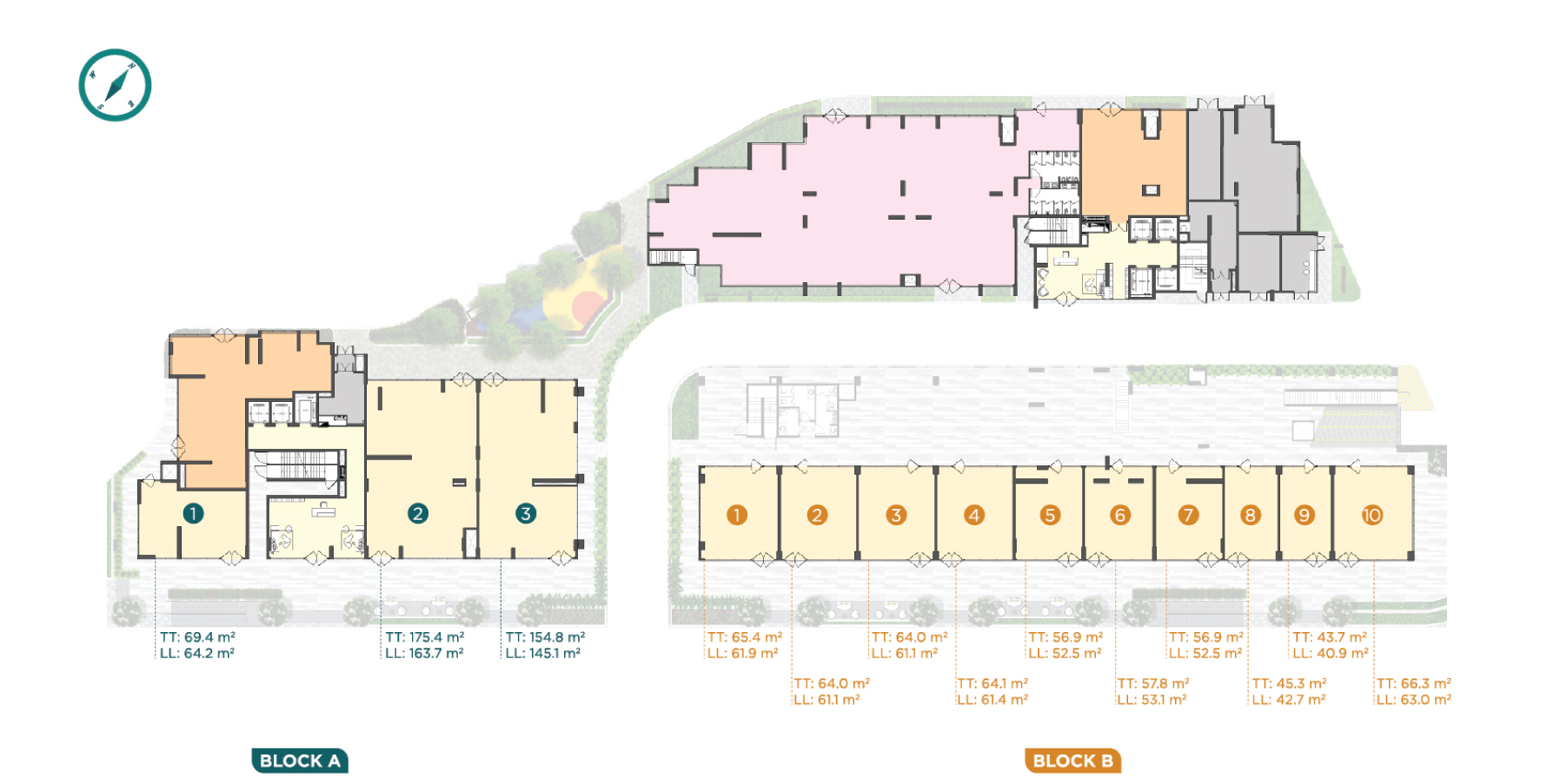 Tầng trệt của D’lusso Diamond là nơi bố trí các căn shophouse và nhà sinh hoạt cộng đồng cùng một số tiện ích khác.