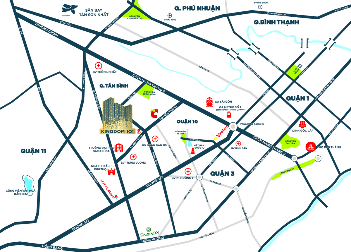 Hotline ☎ 0901.335.996 ✓ Dự án Căn Hộ Kingdom 101 Quận 10 ✓ Chủ đầu tư CT CP Phát Triển Đô Thị Đông Dương – Tập Đoàn Hoa Lâm ✓ Mặt Tiền Tô Hiến Thành ✓ Vị Trí Đắc Địa