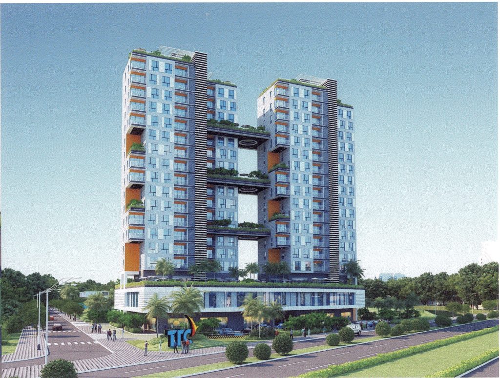 2 tòa tháp cao 18 tầng nổi 1 tầng hầm