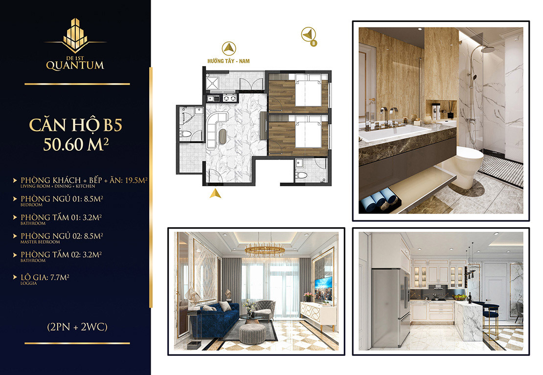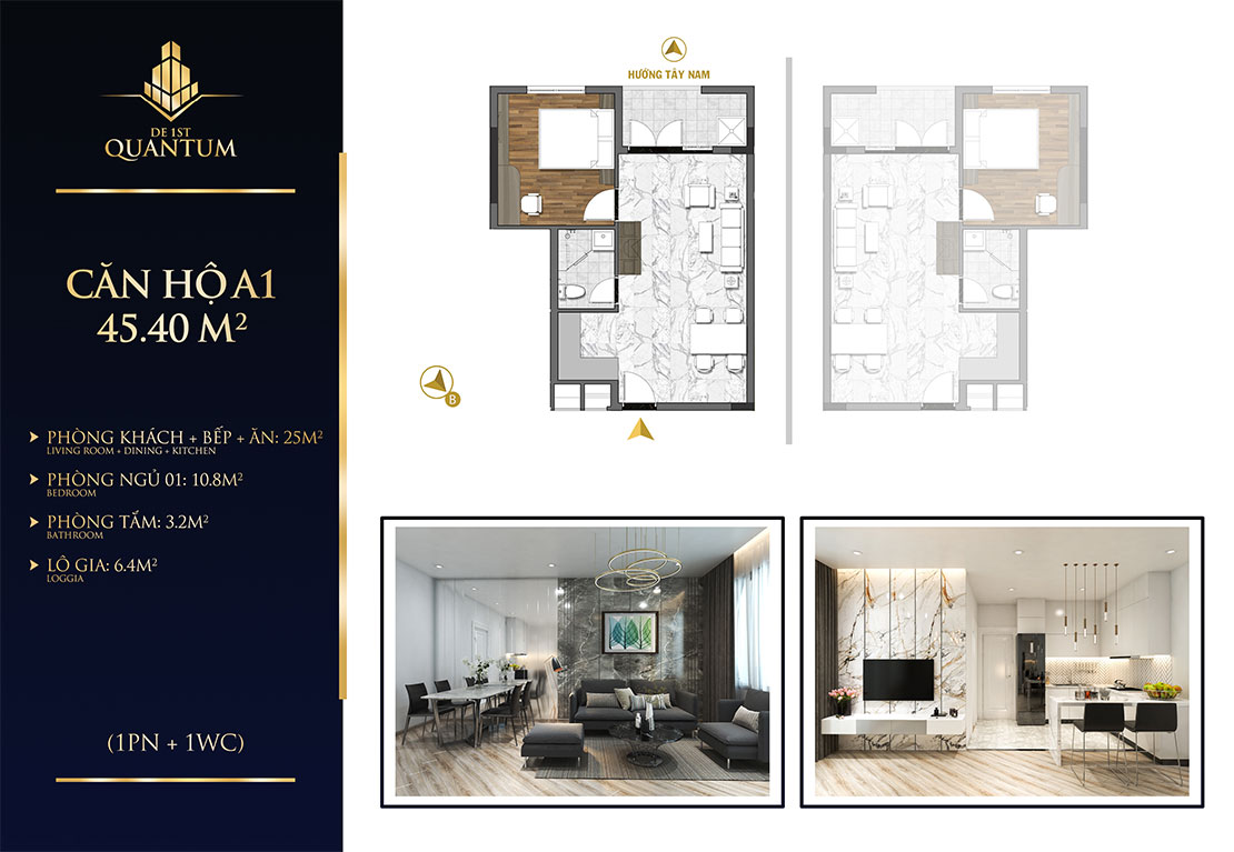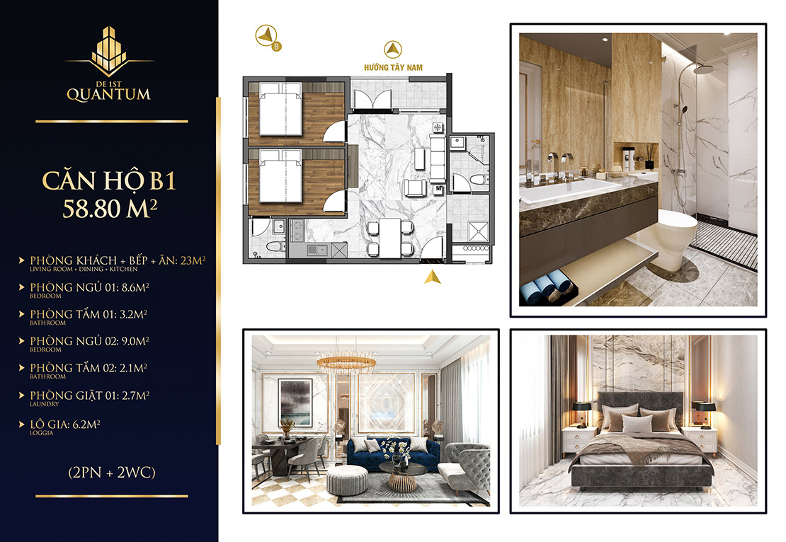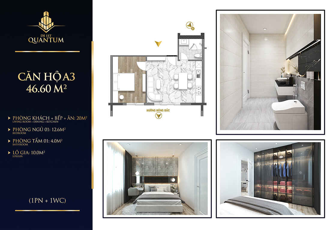 De 1st Quantum là dòng căn hộ cao cấp có quy mô tương đối nhỏ, mật độ căn hộ thấp và phù hợp cho những đối tượng giàu có. Căn hộ De 1st Quantum được thiết kế với các tiện ích cũng như nội thất chuẩn 5 sao mang âm hưởng cuộc sống kiểu mới, sang trọng và lịch thiệp.