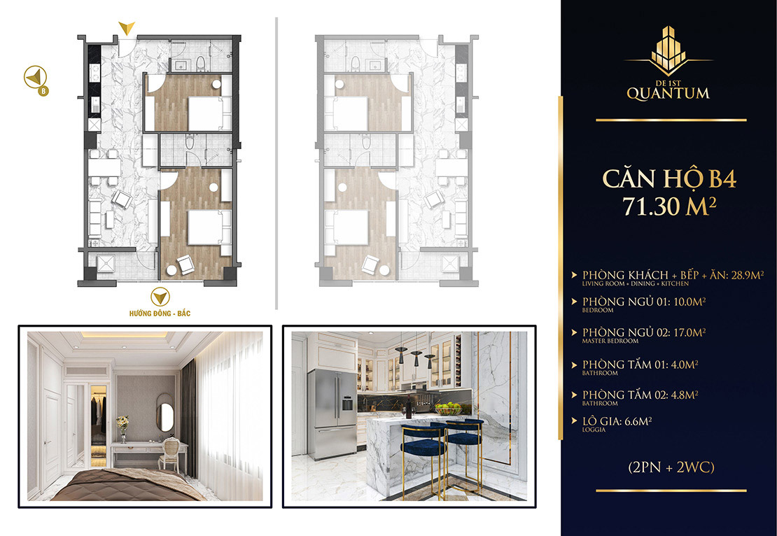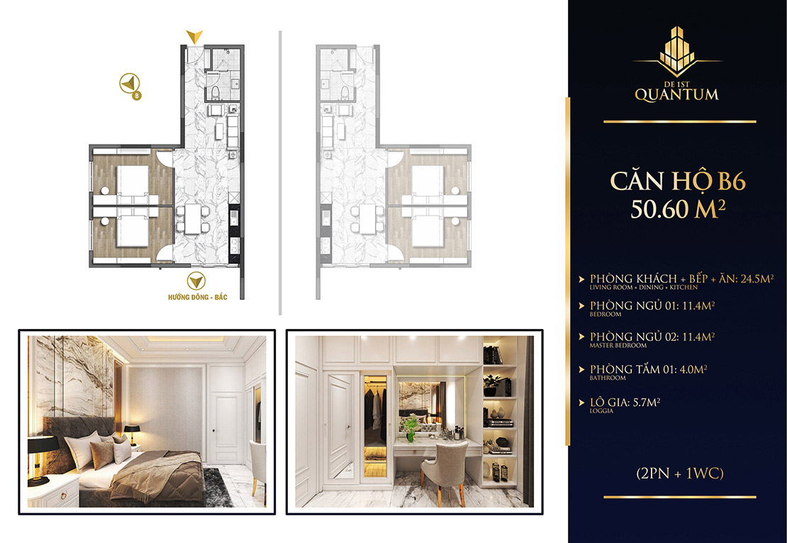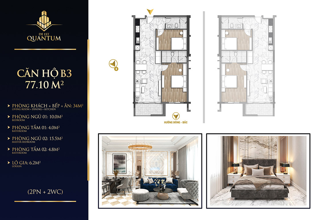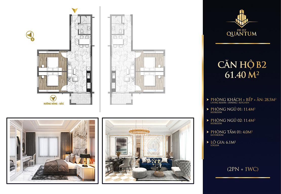 De 1st Quantum là dòng căn hộ cao cấp có quy mô tương đối nhỏ, mật độ căn hộ thấp và phù hợp cho những đối tượng giàu có. Căn hộ De 1st Quantum được thiết kế với các tiện ích cũng như nội thất chuẩn 5 sao mang âm hưởng cuộc sống kiểu mới, sang trọng và lịch thiệp.