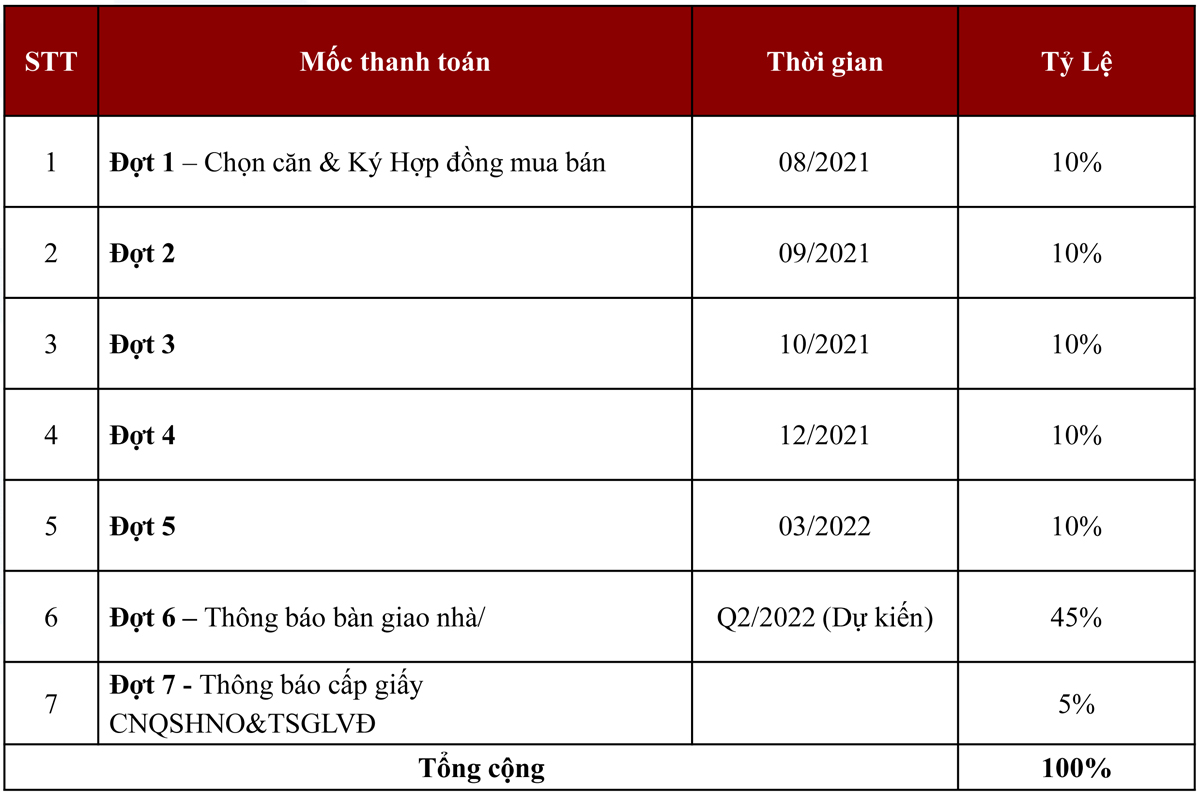 Phương thức thanh toán căn hộ EHome Southgate (dự kiến)