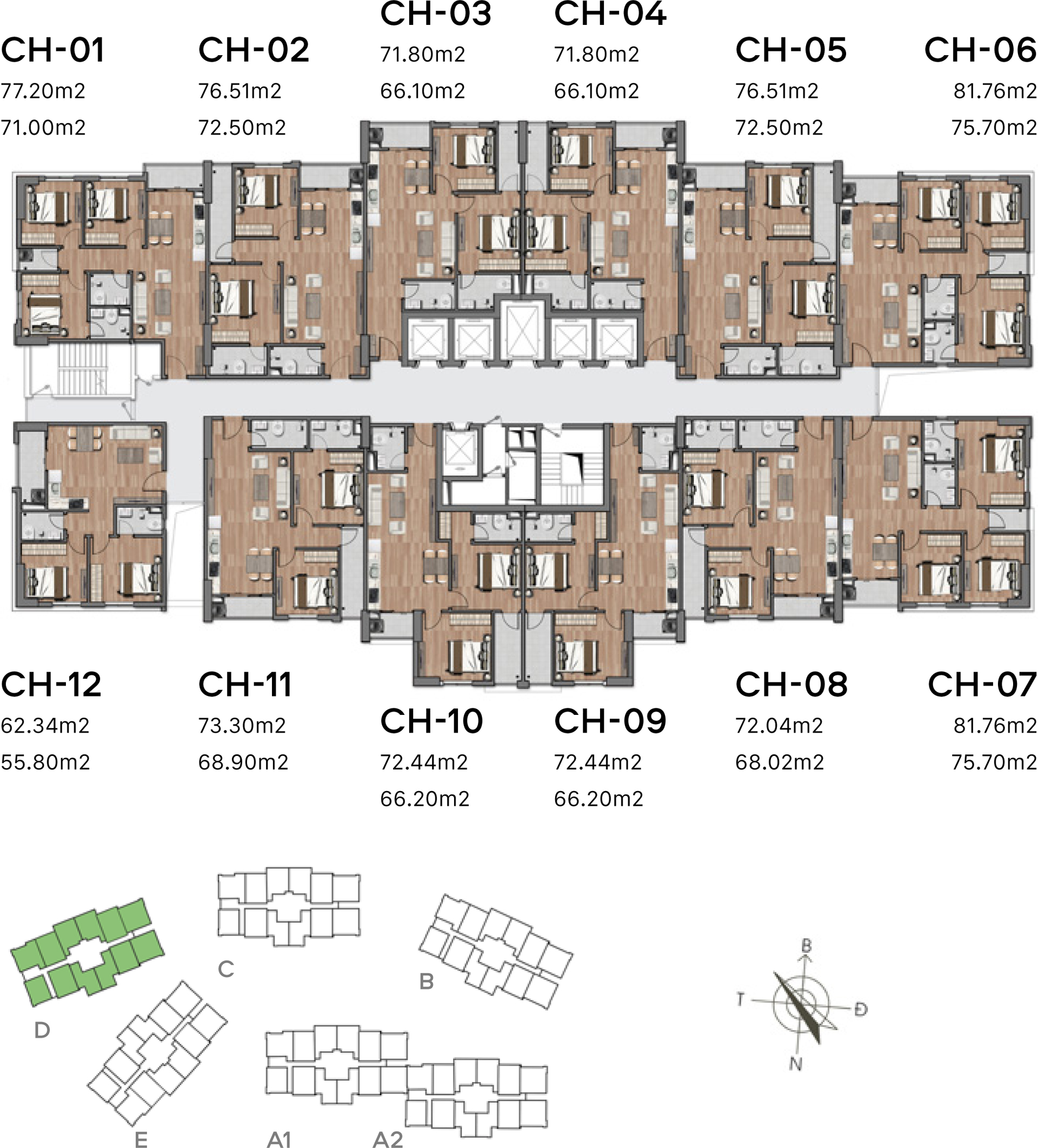 59,6 – 81,5m² (2 phòng ngủ – 3 phòng ngủ)