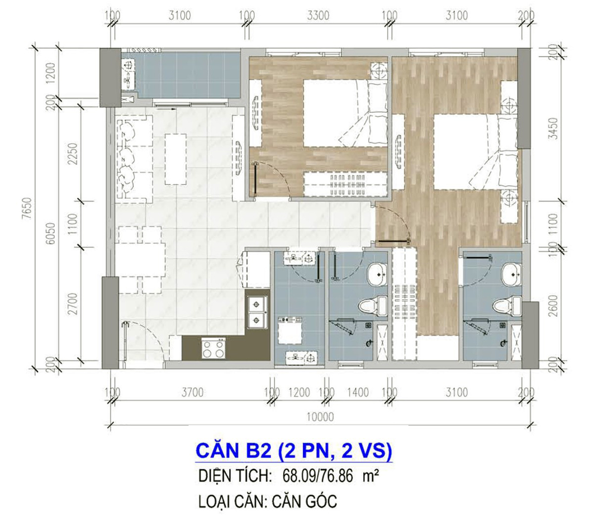 THIẾT KẾ CĂN 2 PHÒNG NGỦ