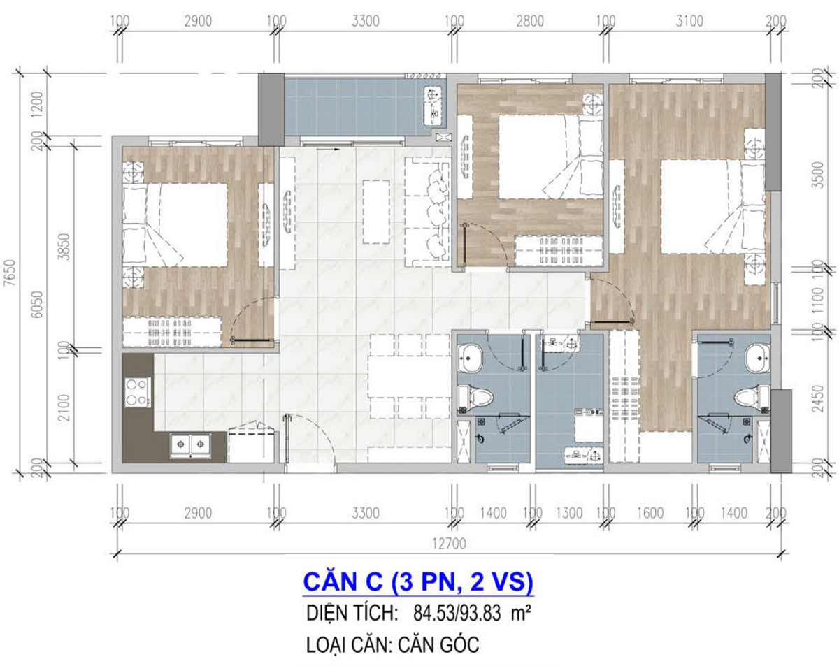 THIẾT KẾ CĂN 3 PHÒNG NGỦ