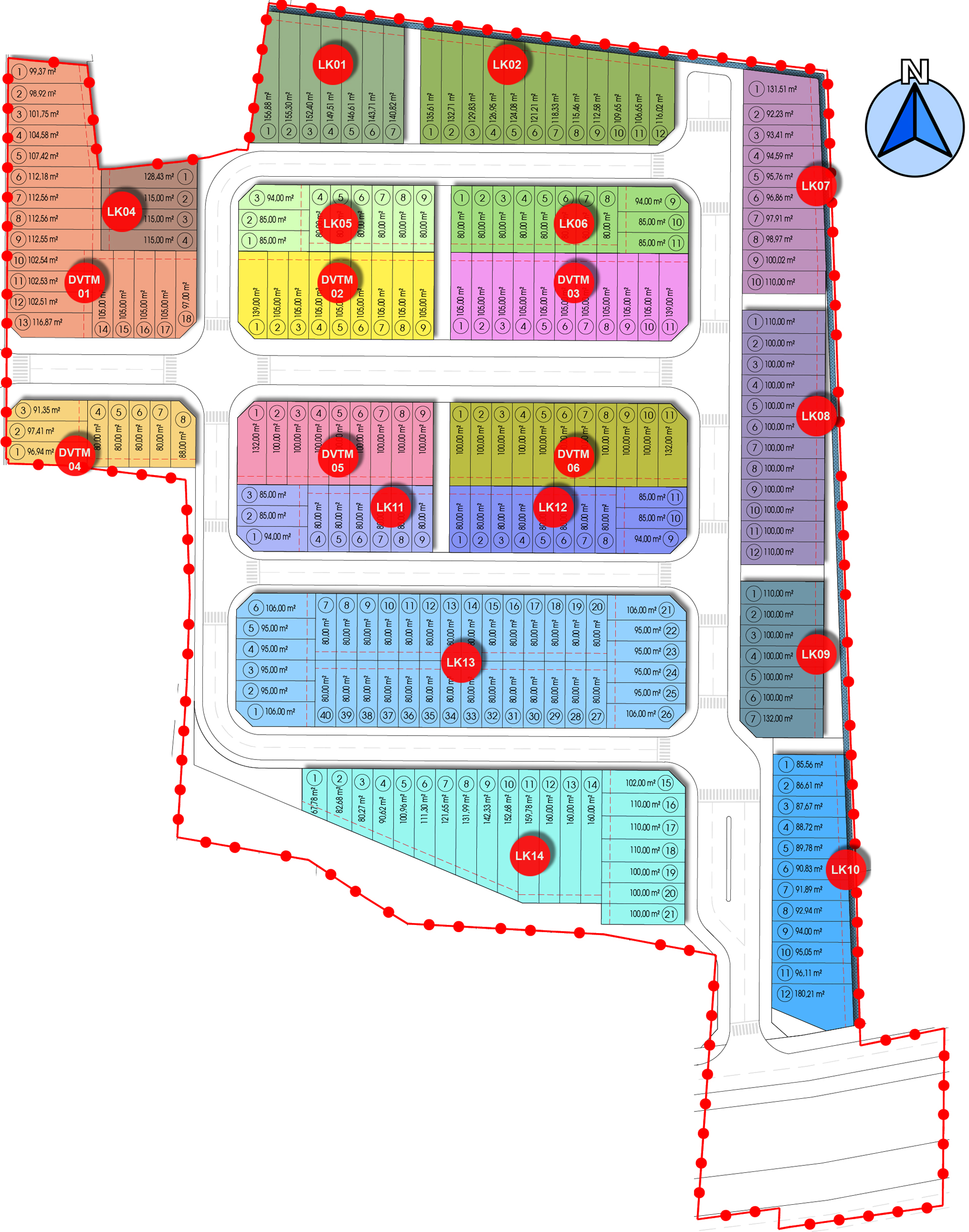 Ngoài 6 khu dành cho dịch vụ thương mại nằm phía ngoài, Galaxy Boulevard còn có 14 khu nhà liên kế nằm phía trong có diện tích từ 80 m² đến 156 m². Hầu hết các lô đất nền Galaxy Boulevard Kim Dính có thiết kế vuông vức, hài hòa cùng hệ thống đường nội bộ rộng rãi, đúng chuẩn đô thị hiện đại.