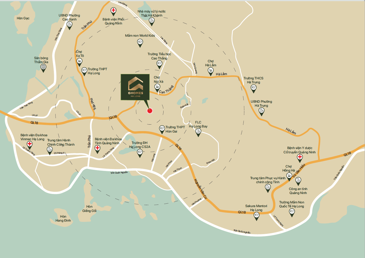 Từ GHomes Hạ Long chỉ mất đôi phút để di chuyển đến các trường học các cấp và trường Đại học. Chỉ từ 5 đến 10 phút là có thể tiếp cận Bệnh viện Đa Khoa, Bệnh viện Phổi, các cơ quan hành chính, chợ, Big C, Vincom Plaza hay các khu vui chơi giải trí…