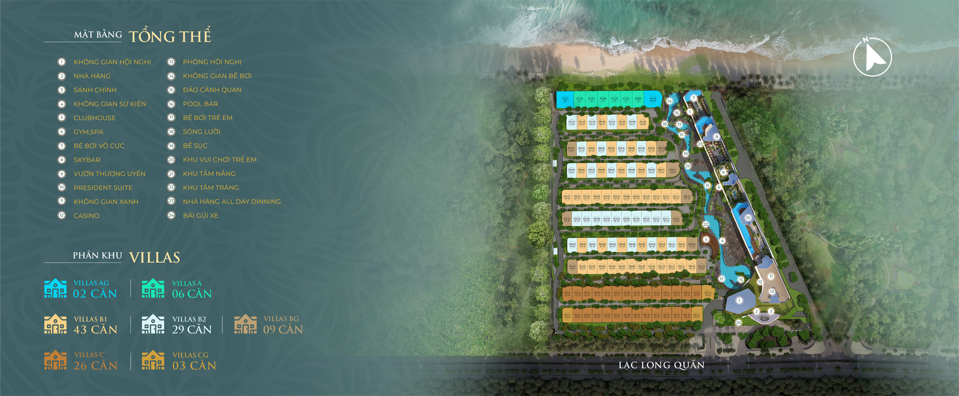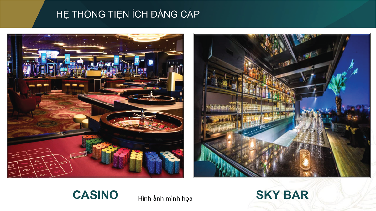 ≡ Không gian hội nghị ≡ Nhà hàng ≡ Sảnh chính ≡ Không gian sự kiện ≡ Club house ≡ Gym, spa ≡ Hồ bơi vô cực ≡ Skybar ≡ Vườn thượng uyển ≡ President suite ≡ Không gian xanh ≡ Casino ≡ Phòng hội nghị ≡ Không gian hồ bơi ≡ Đảo cảnh quan ≡ Pool bar ≡ Hồ bơi trẻ em ≡ Sông lười ≡ Bể sục ≡ Khu vui chơi trẻ em ≡ Khu tắm nằng ≡ Khu tắm trắng ≡ Nhà hàng All day dinning ≡ Bãi gửi xe