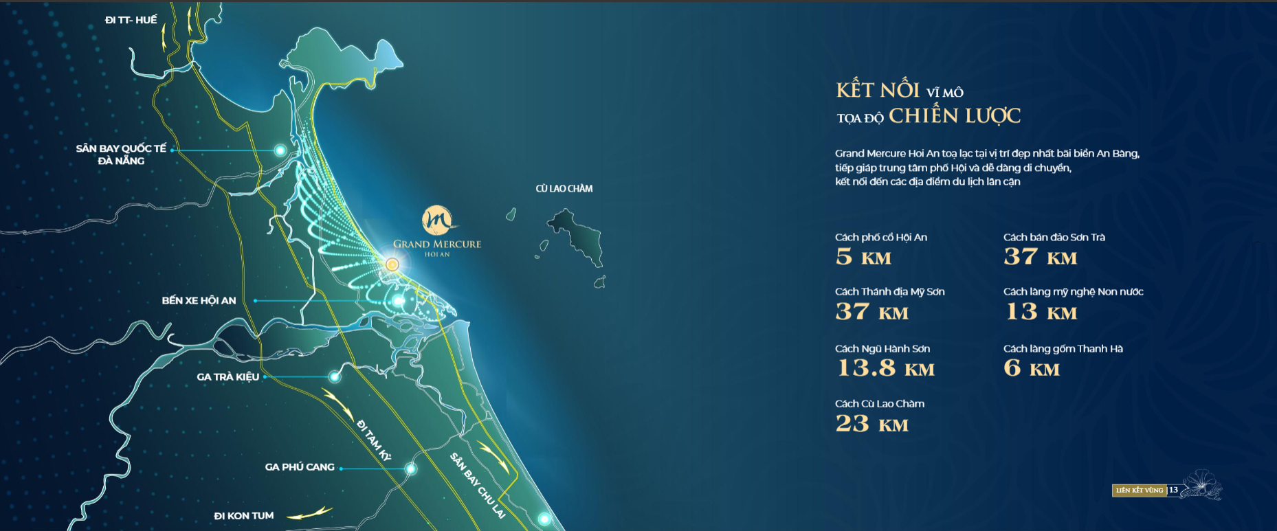 Tại thị trường này, Grand Mercure Hội An là một trong những khoản đầu tư hứa hẹn nhất. Dự án có tất cả các lợi thế về vị trí, chỉ cách sân bay quốc tế Chu Lai 4km, cách thành phố Đà Nẵng 25km và gần các địa danh nổi tiếng khác.