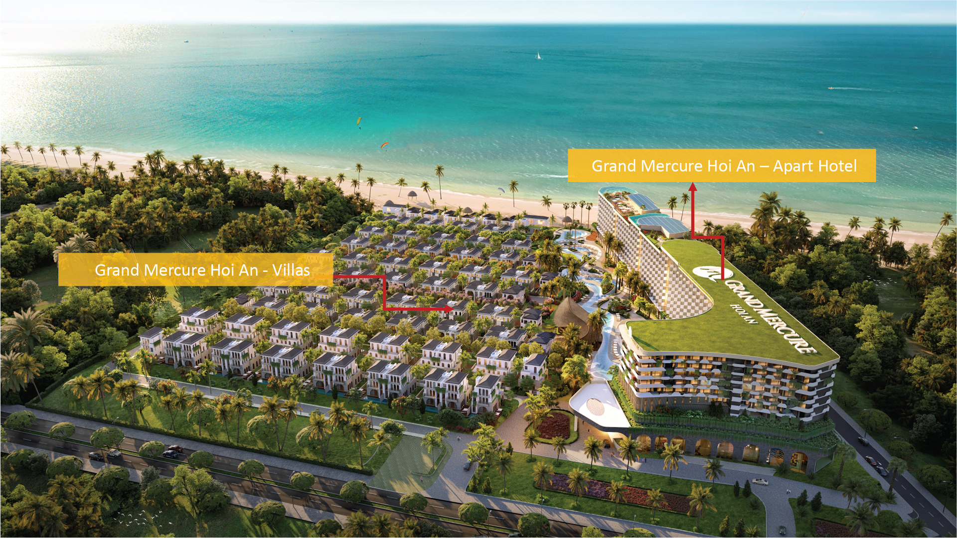Tổng thể dự án Grande Mercure Hội An bao gồm 118 căn biệt thự (Villa) và 393 căn hộ du lịch (Apart Hotel). Tổng diện tích của phân khu villa Grande Mercure Hội An là 24.786 m² với mật độ xây dựng chỉ 17,74%.