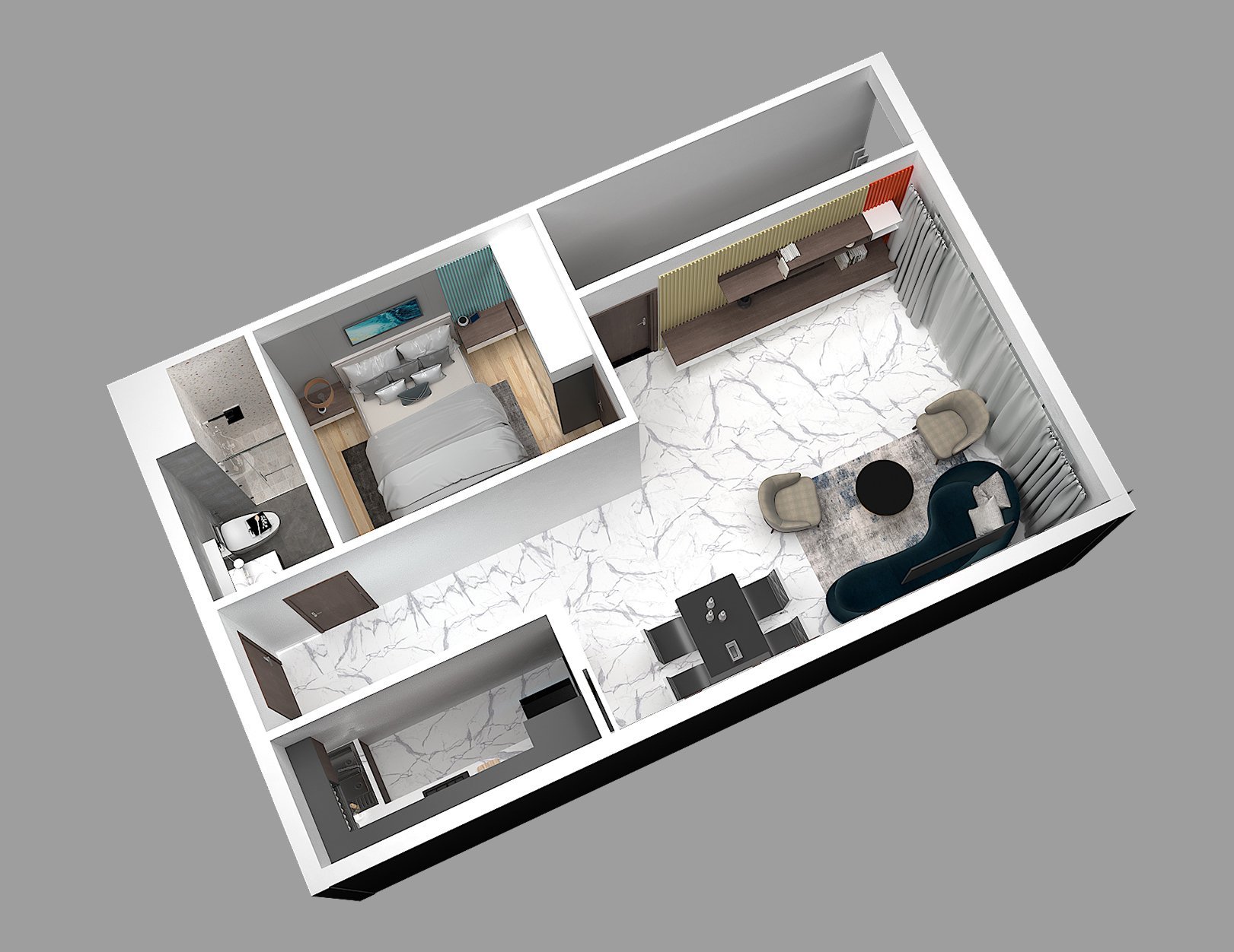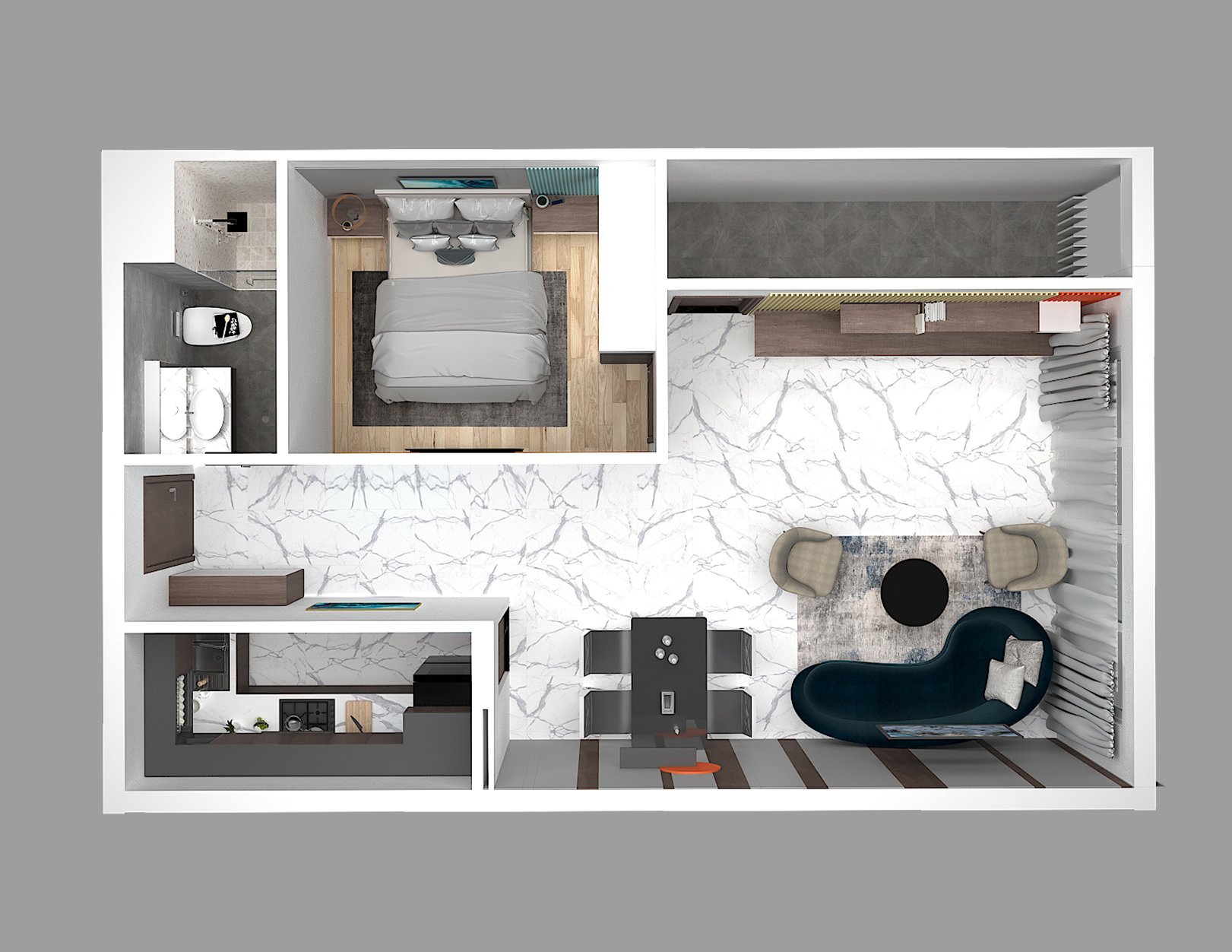 MẶT BẰNG CHI TIẾT CĂN 1 PHÒNG NGỦ