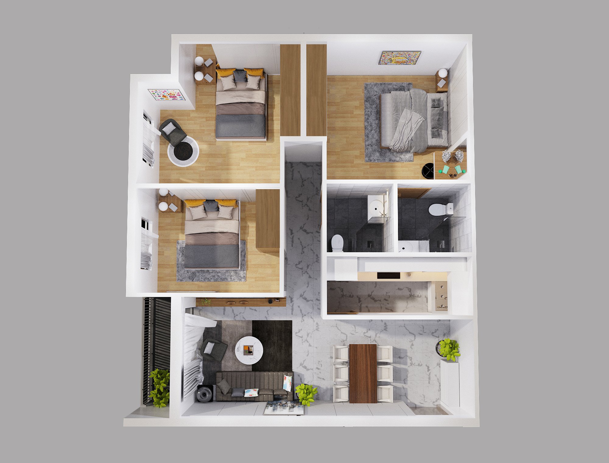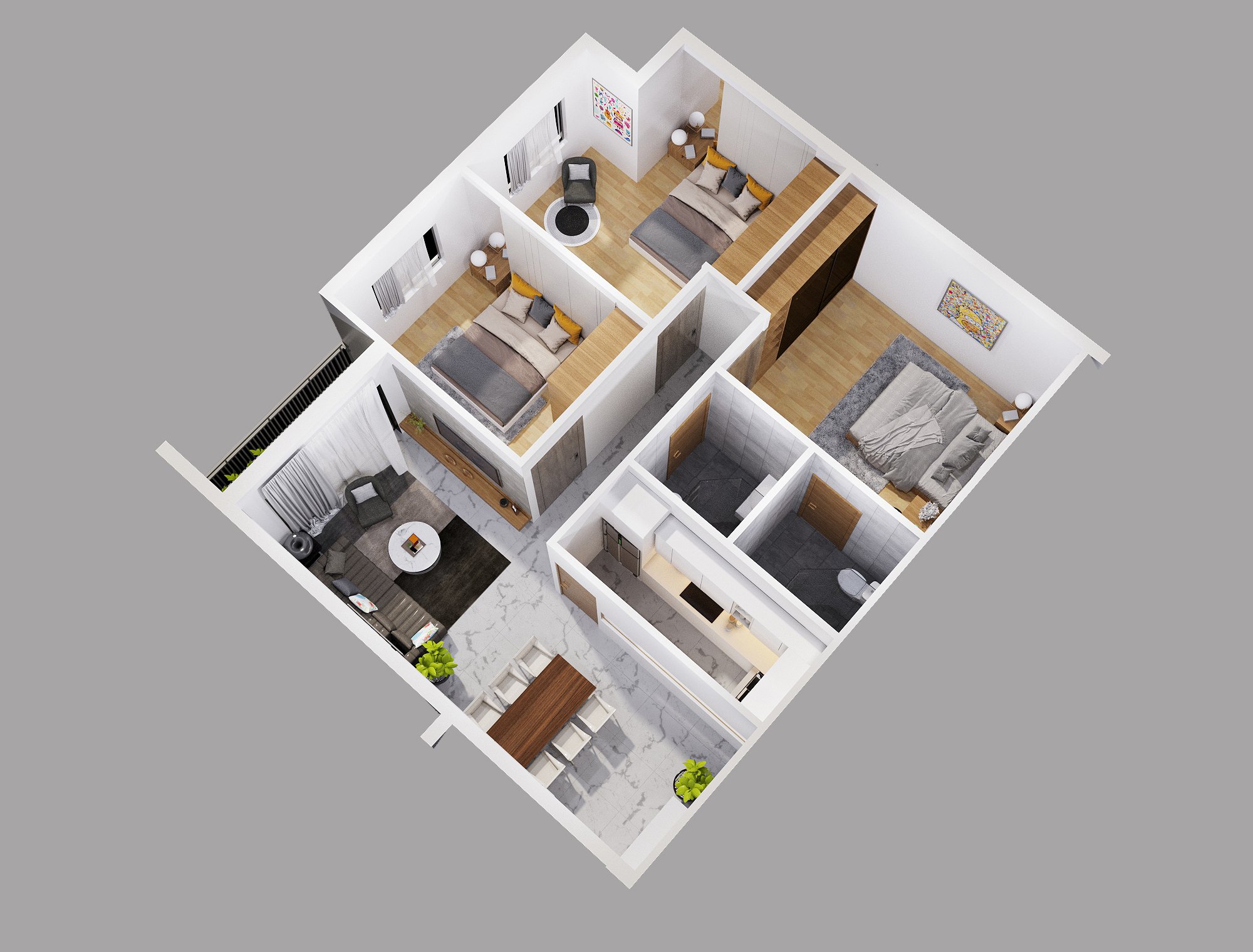 MẶT BẰNG CHI TIẾT CĂN 3 PHÒNG NGỦ