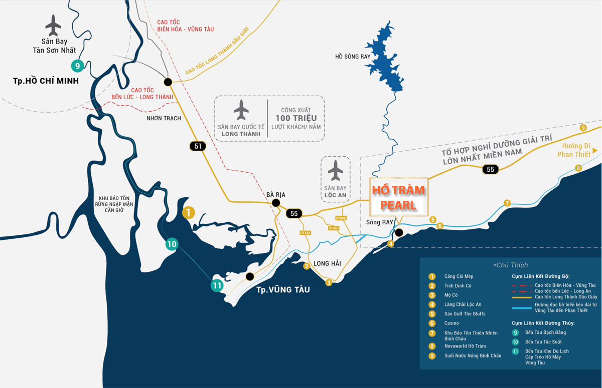 Hiện tại, các tuyến kết nối giao thông đường bộ giữa TP. HCM – Đồng Nai – Bà Rịa Vũng Tàu đã trở nên đa dạng với nhiều đường cao tốc bên cạnh tuyến Quốc Lộ 51 cũ. Đến gần với khu Hồ Tràm Complex chúng ta có thể di chuyển bằng cao tốc Biên Hòa – Vũng Tàu hoặc 2 tuyến cao tốc TP. HCM – Long Thành – Dầu Giây và Bến Lức – Long Thành rồi sau đó hướng vào Quốc Lộ 51.