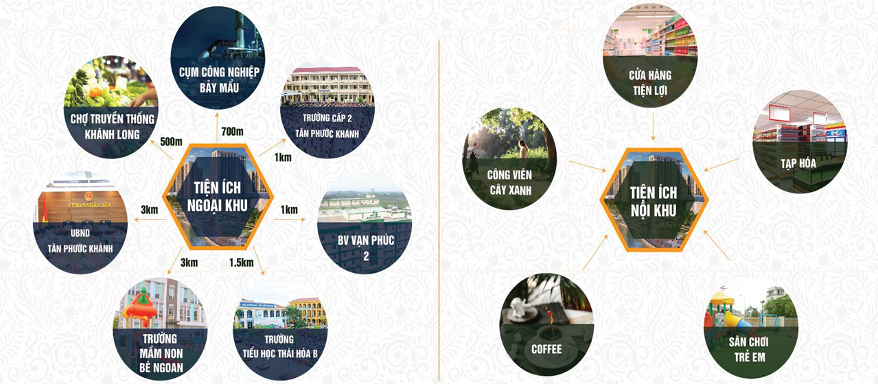 Vì khu đất nền Hoàng Tiến Central nằm ngay trung tâm phường Tân Phước Khánh, một trong những trung tâm kinh tế – văn hóa của tỉnh Bình Dương nên có nhiều tiện ích – dịch vụ cung cấp cho người dân. Trong vòng bán kính 1km có nhiều lựa chọn để ăn uống, vui chơi cũng như học hành và chăm sóc sức khỏe.