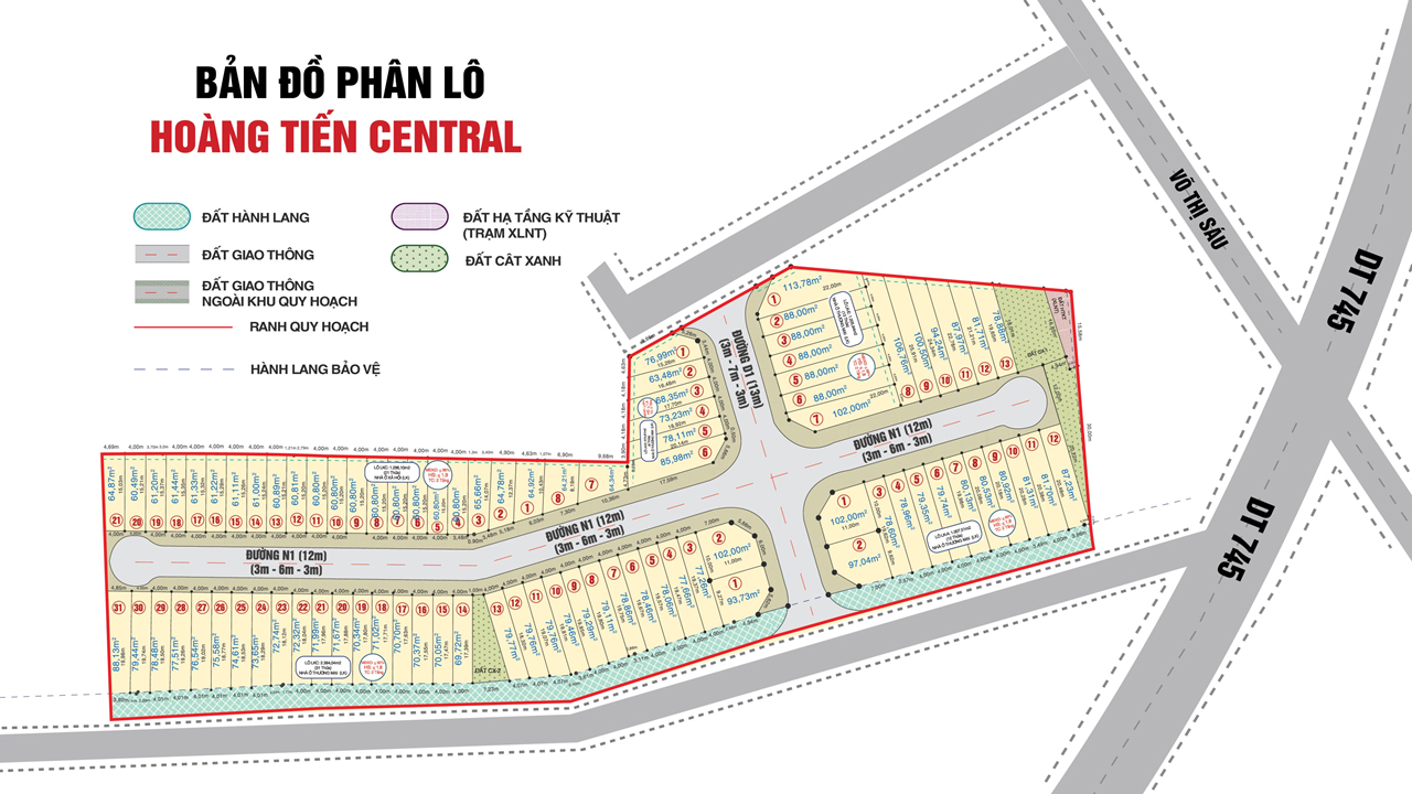 Mặc dù Hoàng Tiến Central là dự án quy mô nhỏ, chỉ gồm 85 căn nhưng lại sở hữu vị trí đắc địa, thế đất vượng tôn. Hơn nữa, Hoàng Tiến Central Tân Uyên có hạ tầng được quy hoạch bài bản, pháp lý rõ ràng với sổ riêng từng nền, thổ cư 100%.