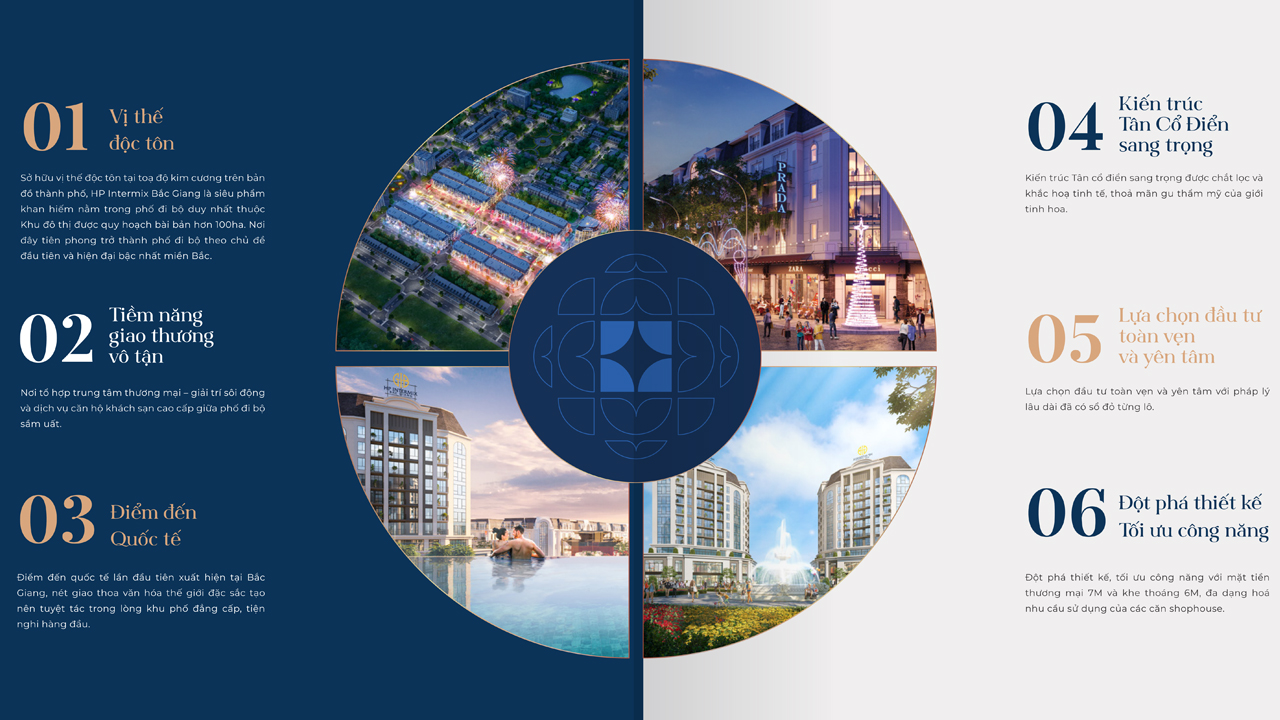 HP Intermix Bắc Giang được chủ đầu tư kỳ vọng trở thành phố đi bộ mang màu sắc Quốc tế mới xuất hiện tại Bắc Giang, kiến tạo nên chất sống hội nhập khác biệt là sự cộng hưởng những tiêu chuẩn cao cấp và tiện ích đặc quyền không chỉ nâng tầm giá trị sống đẳng cấp của cư dân, mà còn ươm mầm tinh hoa thế hệ công dân toàn cầu.