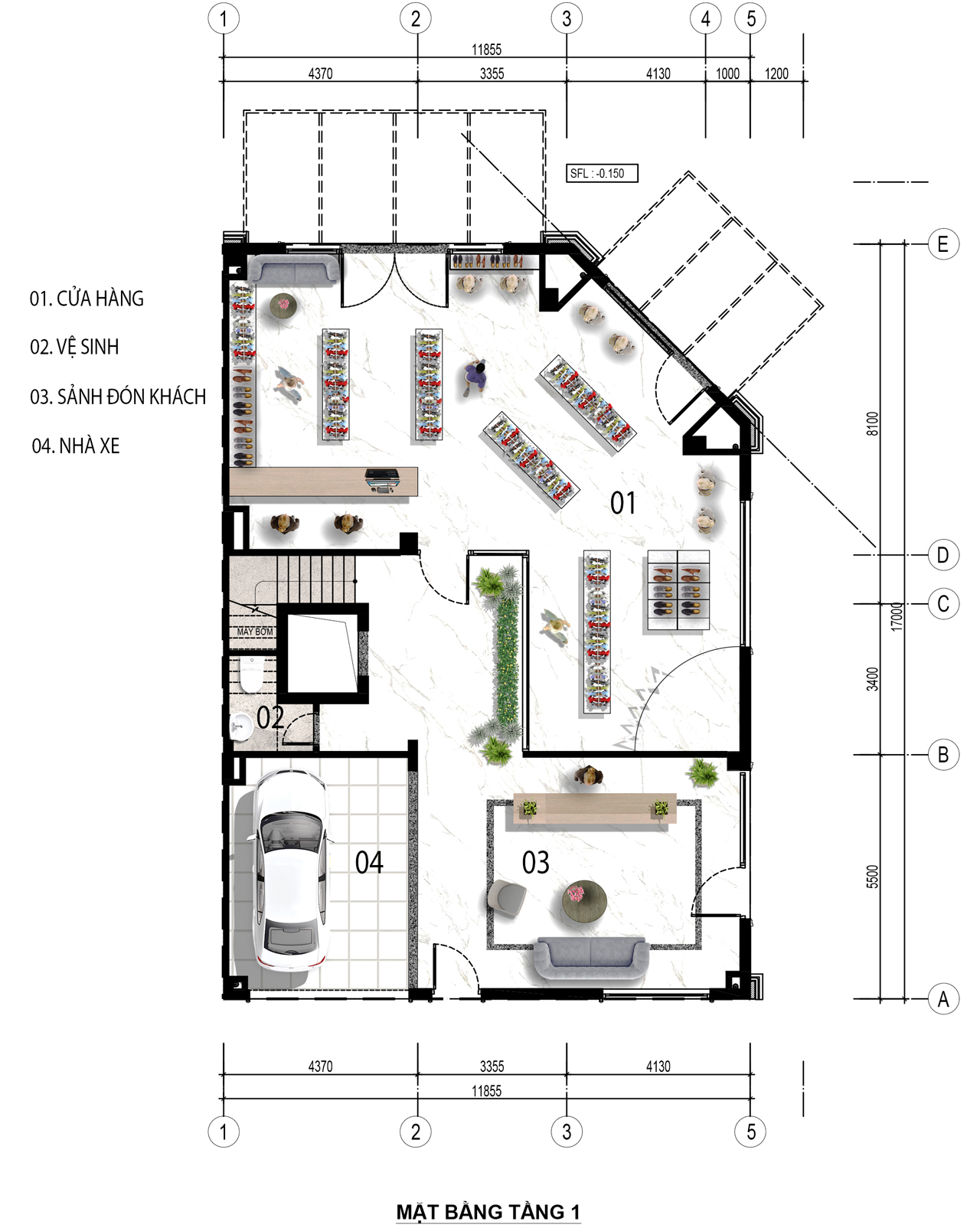 Shophouse HP Intermix được thiết kế với chức năng chính là cửa hàng dịch vụ ăn uống kết hợp với nhà ở cho thuê.