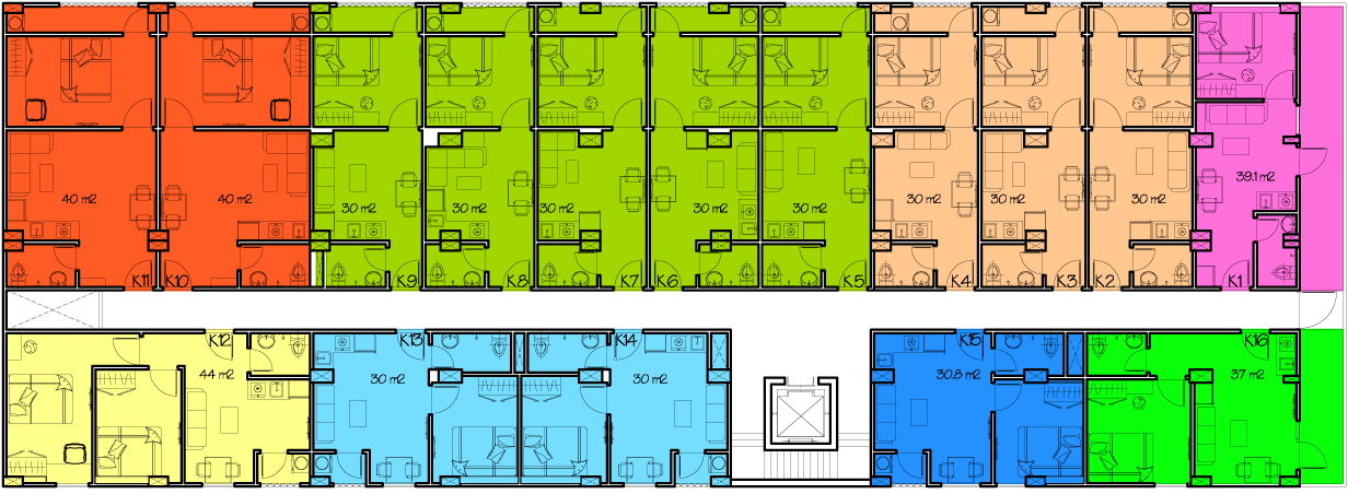 Tầng 2 -3 – 4, ngoài các căn hộ ở tầng trệt và lửng có thêm 3 căn 30m², 1 căn 39,1m², 1 căn 37m² và 1 căn 30.8m² trong đó 2 căn K1 và K16 có view ra mặt tiền của dự án căn hộ K-Home Gò Vấp.