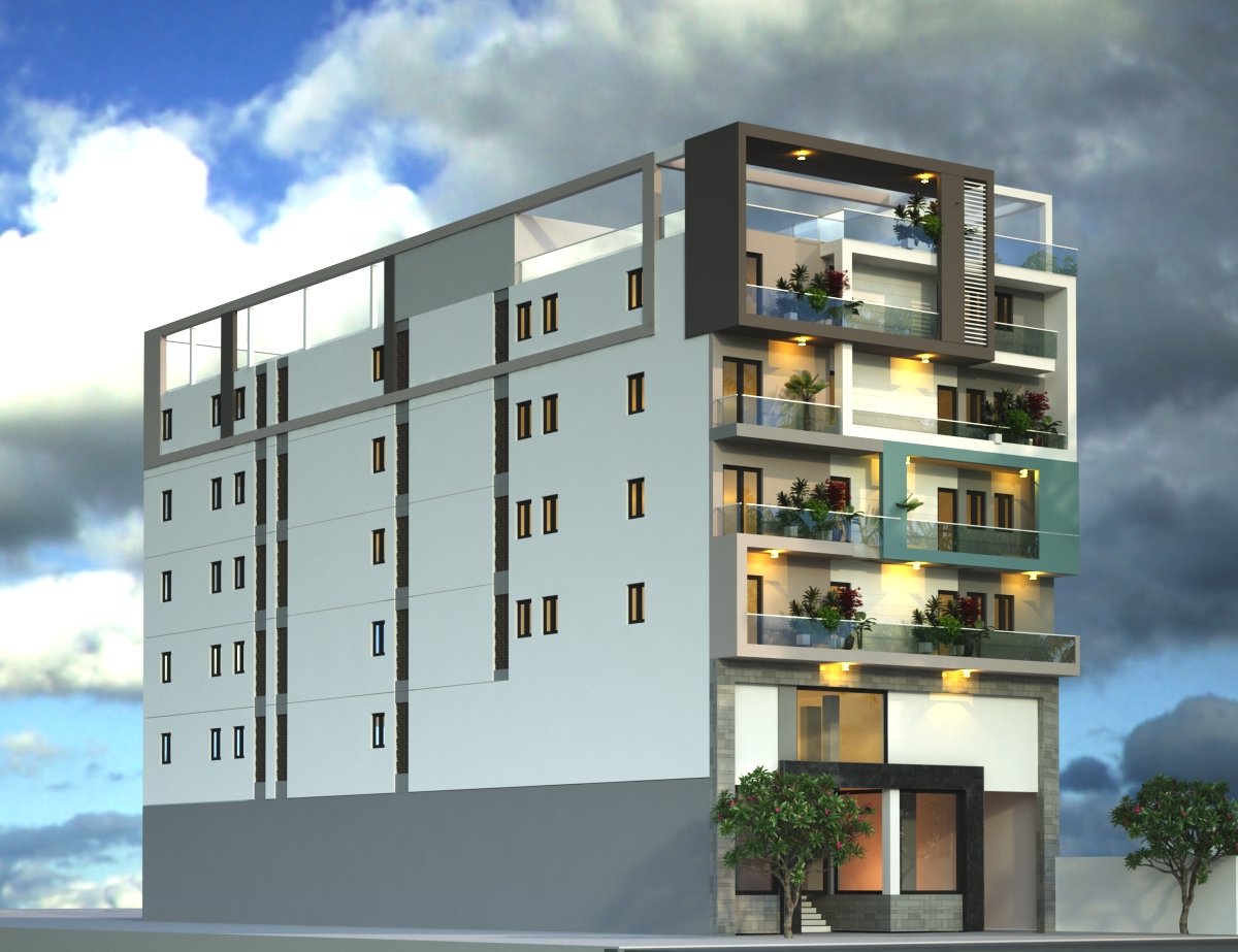 1 khối tháp cao 4 tầng cao 1 tầng hầm |