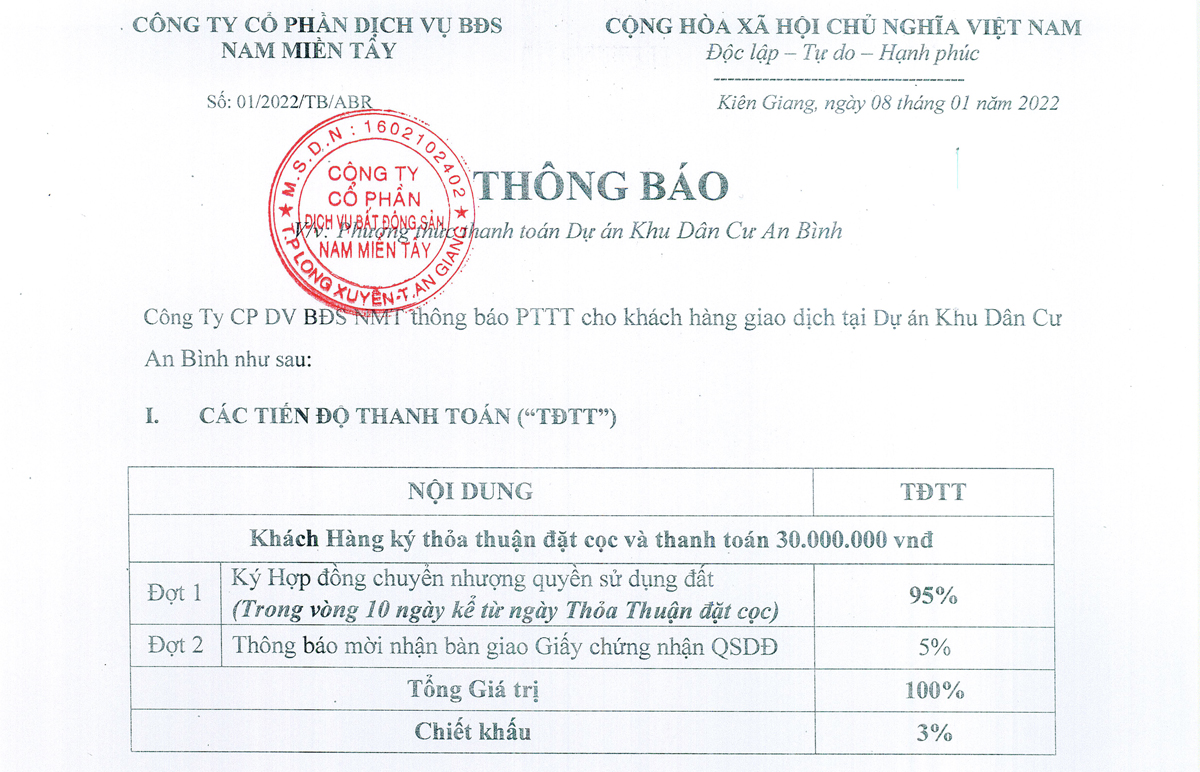 Phương thức thanh toán KDC An Bình Tắc Cậu