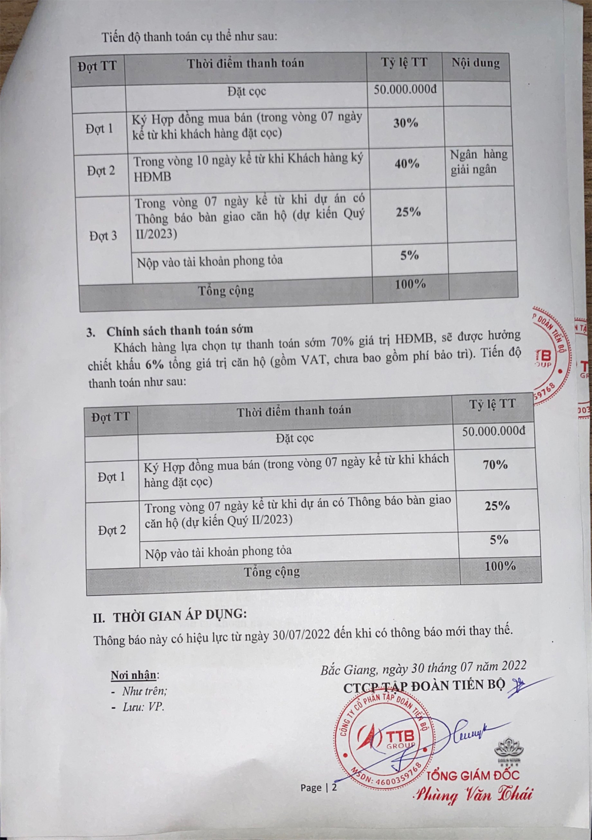 Thời gian bàn giao