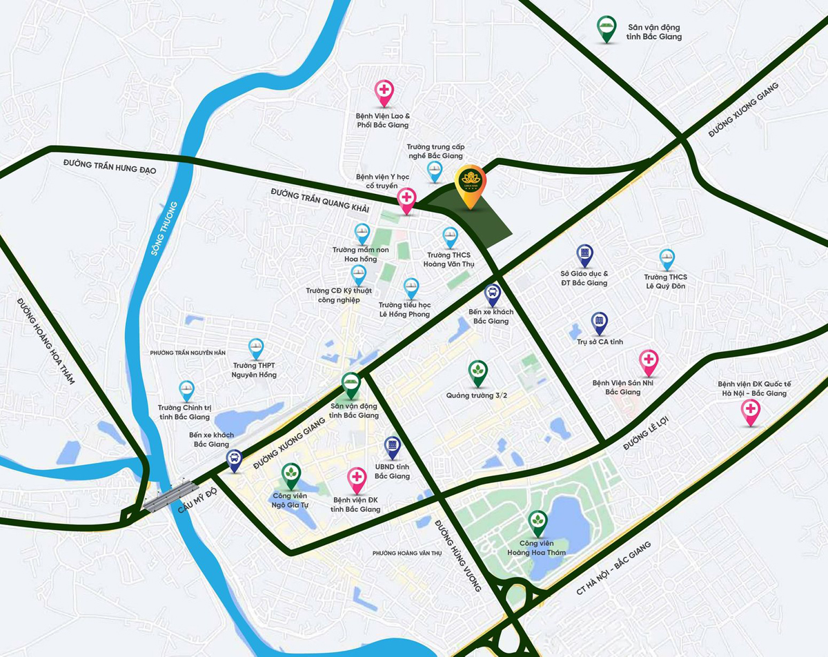 Từ vị trí dự án Lotus Star Thọ Xương, cư dân dễ dàng tiếp cận khu trung tâm hành chính, đi qua cầu vượt Bến Hướng vào khu vực Song Mai – Đa Mai, đồng thời cũng có thể sử dụng những tiện ích gần đó như dịch vụ y tế, trung tâm thương mại, bến xe, công viên Hoàng Hoa Thám, quảng trường 3/2…