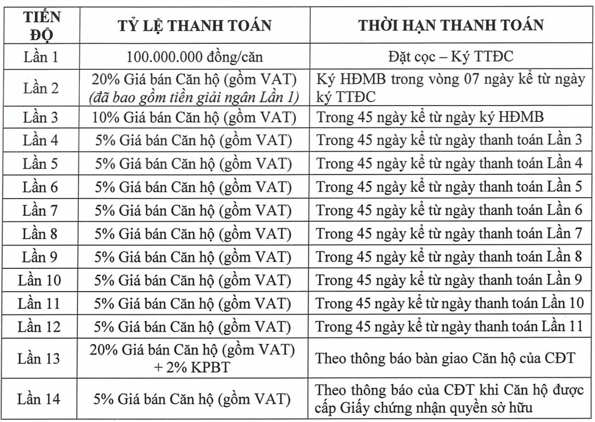 + Chiết khấu 3% khi chọn hình thức thanh toán theo tiến độ thông thường