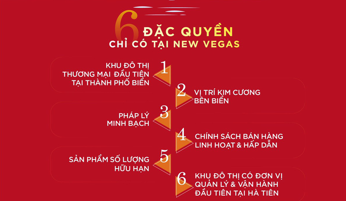 New Vegas sẽ là khu đô thị thương mại bên biển đầu tiên được quy hoạch bài bản ngay tại thành phố cửa khẩu với các dòng sản phẩm độc đáo với số lượng có hạn, pháp lý minh bạch và được quản lý và vận hành chuyên nghiệp.