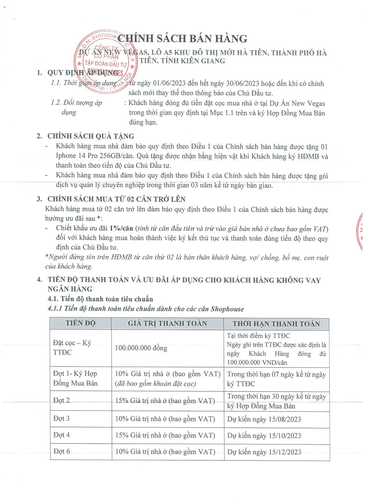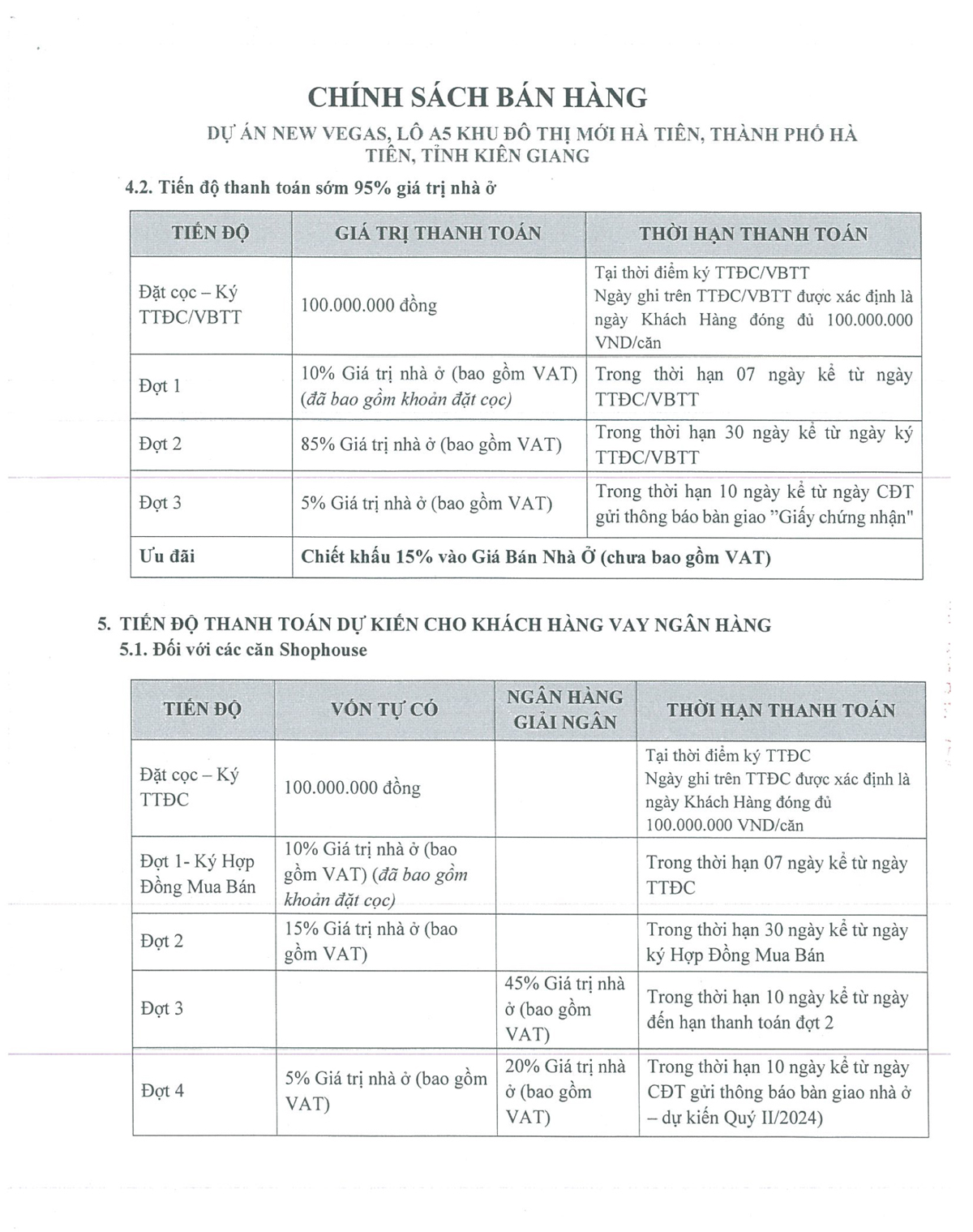 - Giá bán ShopHouse New Vegas Hà Tiên chỉ từ 5,6 tỷ – 5,8 tỷ (căn thường ) hay 6 tỷ – 6,5 tỷ (view công viên) và 8,3 tỷ