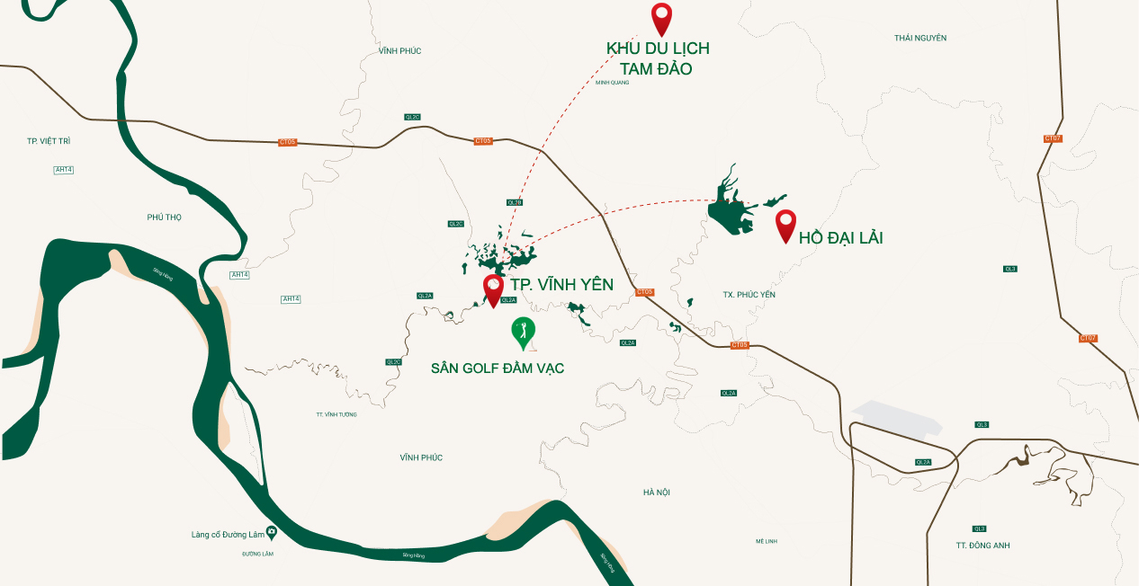 - Cách Hồ Đại Lải 30 phút