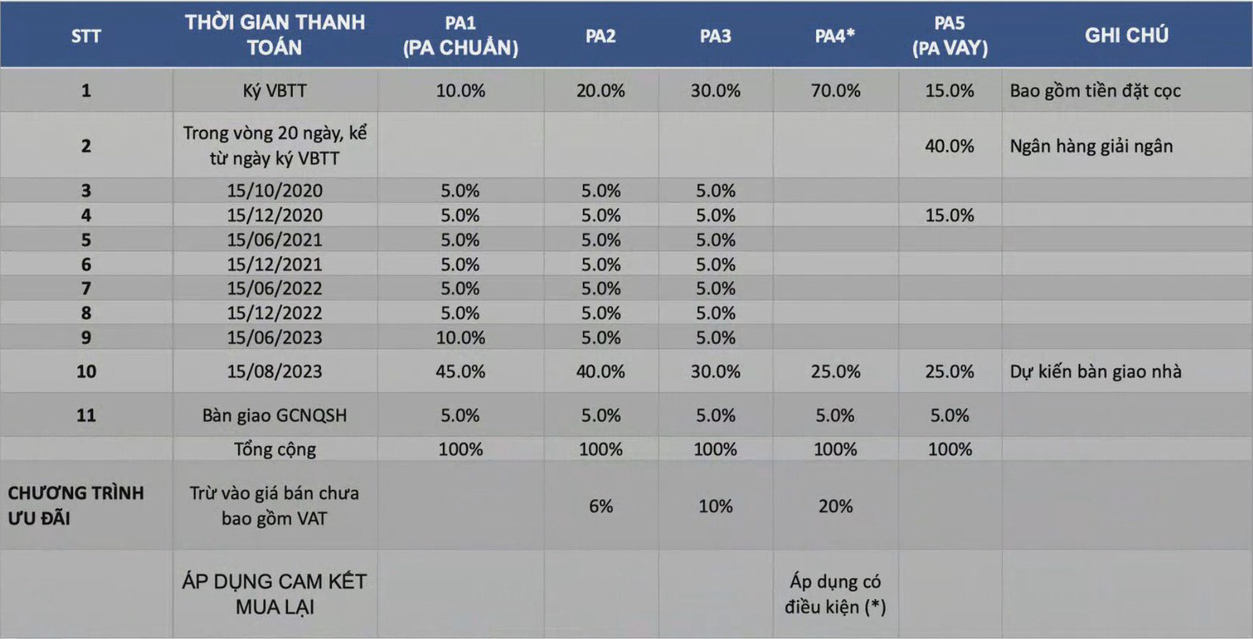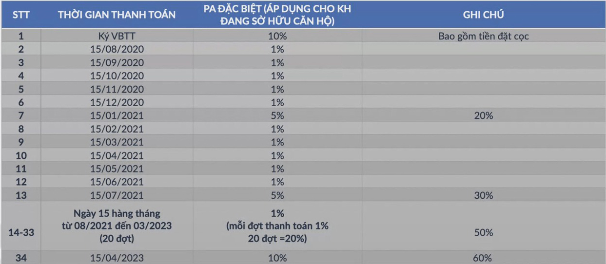 Phương thức thanh toán đặc biệt áp dụng cho khách hàng có hộ khẩu hoặc địa chỉ thường trú trên chứng minh thư tại các tỉnh thành tính từ Đà Nẵng trở ra miền Bắc hoặc các khách hàng đang sở hữu căn hộ tại Thành phố Hồ Chí Minh.