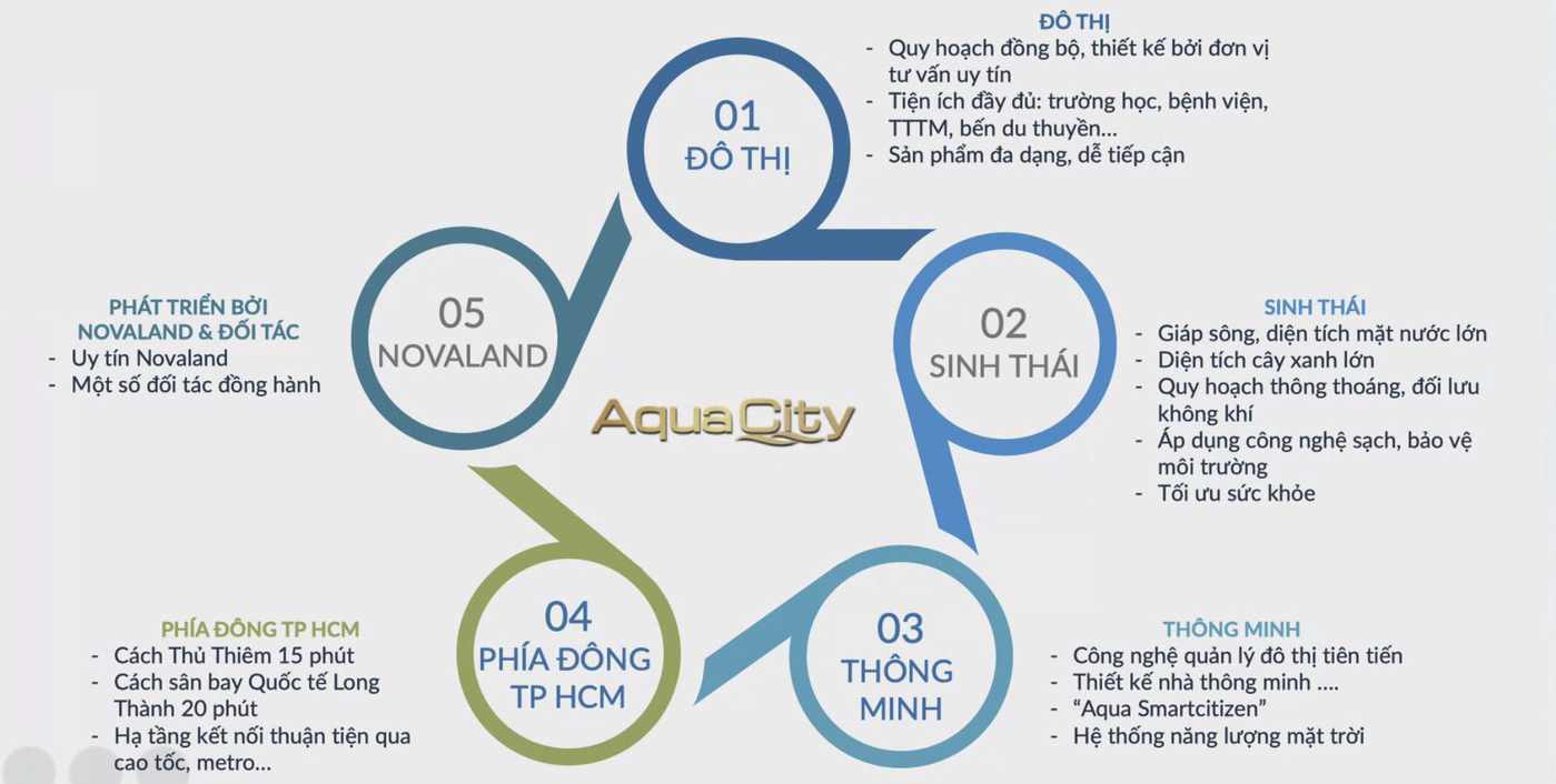 Aqua City là một thành phố sinh thái thông minh được phát triển bởi Tập đoàn Novaland với gần 30 năm kinh nghiệm phát triển và một danh mục sản phẩm đa dạng tại các vị trí chiến lược trọng điểm của thành phố Hồ Chí Minh và khắp các tỉnh thành Việt Nam khác.