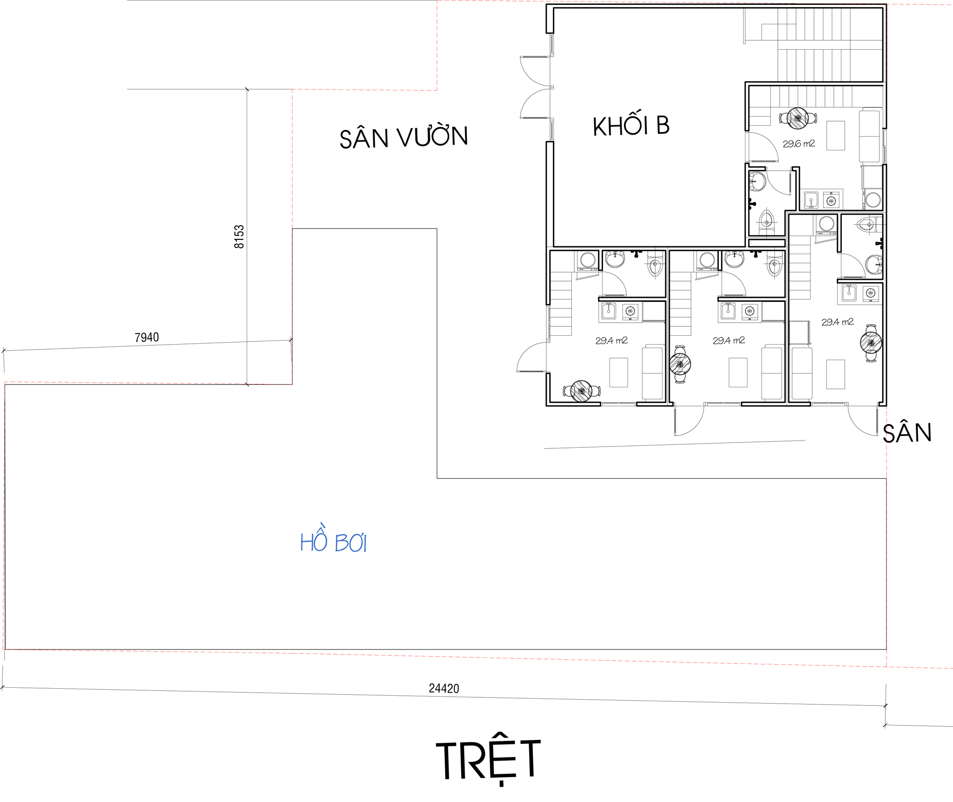 MẶT BẰNG TẦNG TRỆT – BLOCK B