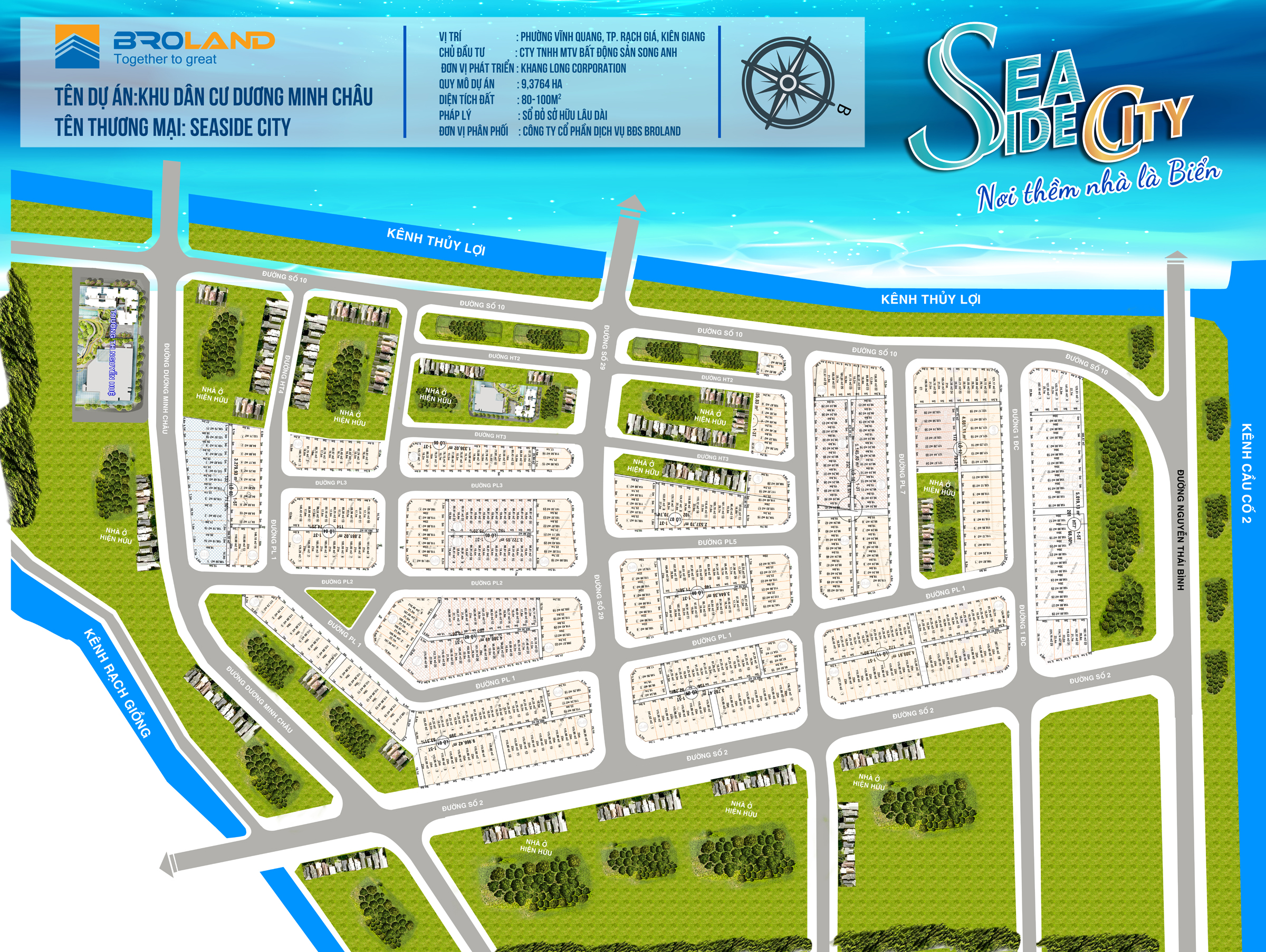 Khu dân cư Seaside City Rạch Giá Kiên Giang có diện tích hơn 38 ha được quy hoạch nhiều hạng mục như đất nền nhà ở liên kế, biệt thự, chung cư trong đó quy mô của khu đất nền hơn 300 lô. Các lô đất nền có diện tích từ 90 m² đến 100 m².