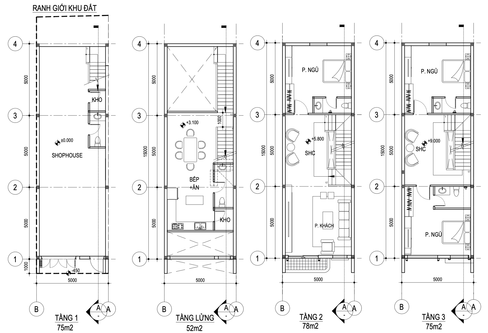 01 trệt, 01 lửng, 02 lầu, 01 áp mái |