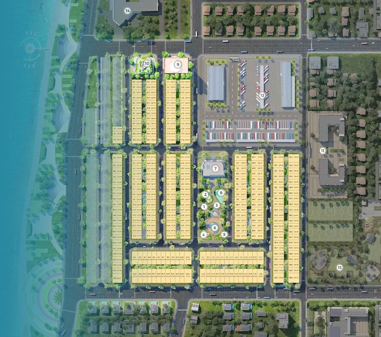 263 căn nhà liền, nhà phố tại khu đô thị Sunora Đồng Hới Quảng Bình được phân bổ vô cùng đẹp mắt trong đó hình dạng từng cụm và từng căn đều vuông vức, rộng rãi. Những trục đường chính, đường nội khu đan xen vào nhau theo hình dáng bàn cờ trong đó khu tiện ích nội khu được bố trí ngay giữa nội khu giúp cho tất cả cư dân có thể đến và giải trí chỉ với vài bước chân.