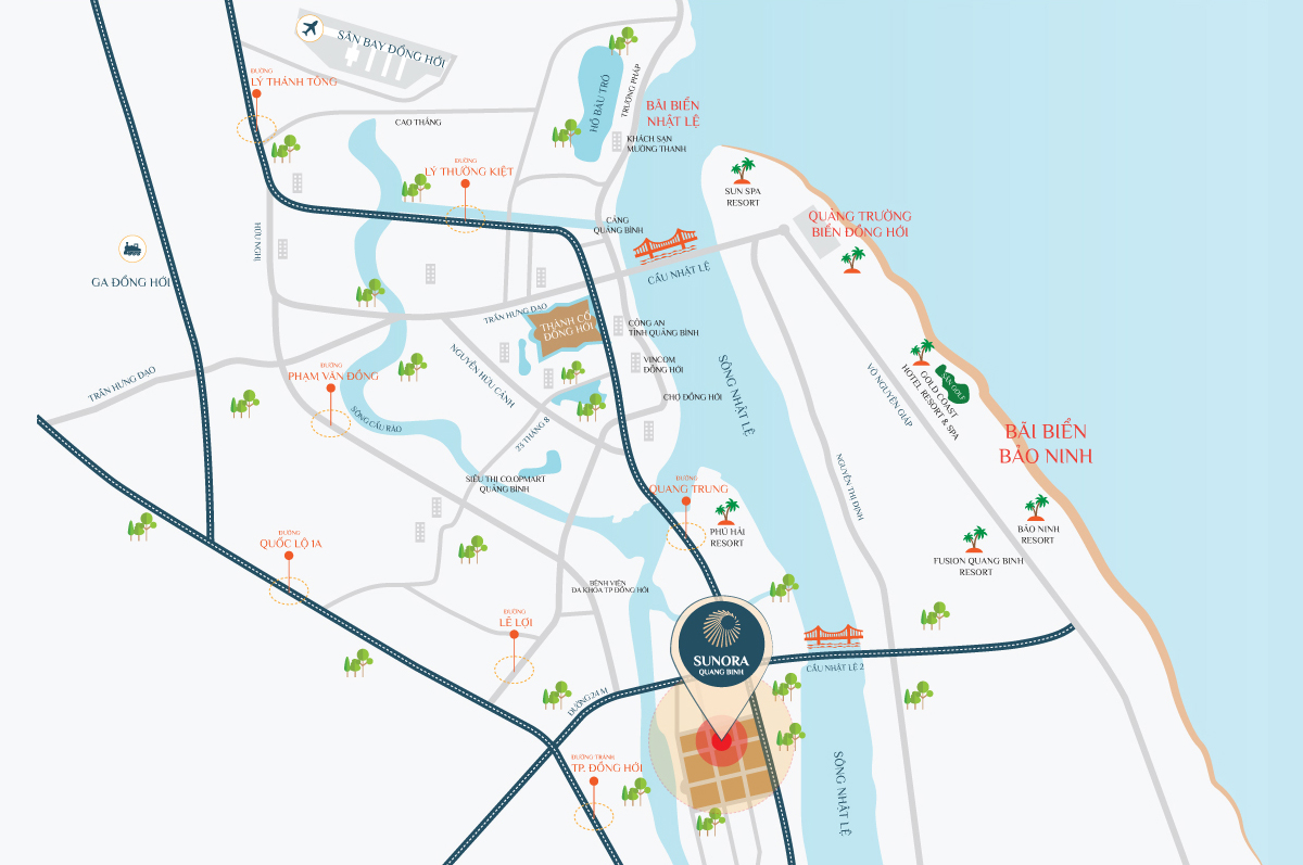 Dự án Sunora Quảng Bình có nhiều lợi thế khi tọa lạc ngay trung tâm thành phố Đồngg Hới đồng thời còn sở hữu “vượng khí tài lộc” khi nằm giữa 2 con sông Lệ Kỳ và Nhật Lệ. Quảng Bình cũng với 2 con sông này luôn là nguồn cảm hứng bất tận và được ví như mảnh đất VÀNG với nhiều tiềm năng vốn có, Quảng Bình trở thành tâm điểm đón các làn sóng đầu tư đổ về bởi nhiều yếu tố vượt trội.