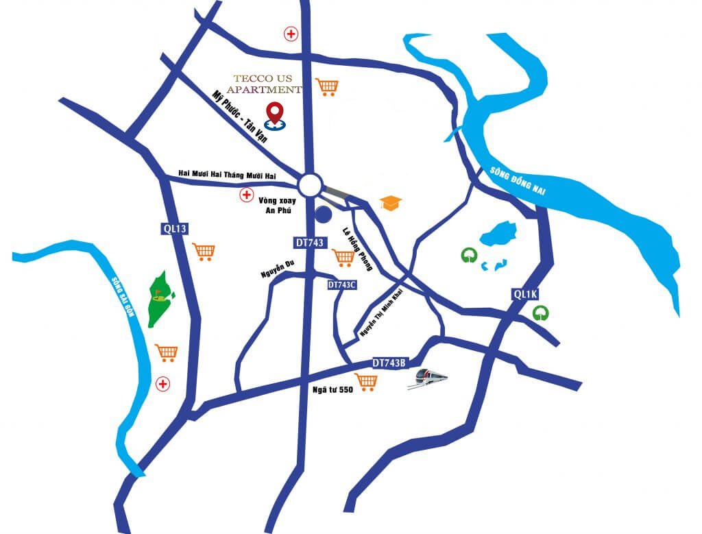 Dự án Tecco Felice Homes tọa lạc ngay tại mặt tiền mặt tiền đường Lê Thị Trung, thuộc phường An Phú, huyện Thuận An, tỉnh Bình Dương. Dự án sở hữu địa thế khá đẹp lại thuận tiện trong việc kết nối với nhiều tuyến đường lớn của Thuận An; như: Mỹ Phước – Tân Vạn; đường DT743… nên có thể di chuyển cực nhanh đến tất cả các khu vực trong Thuận An.