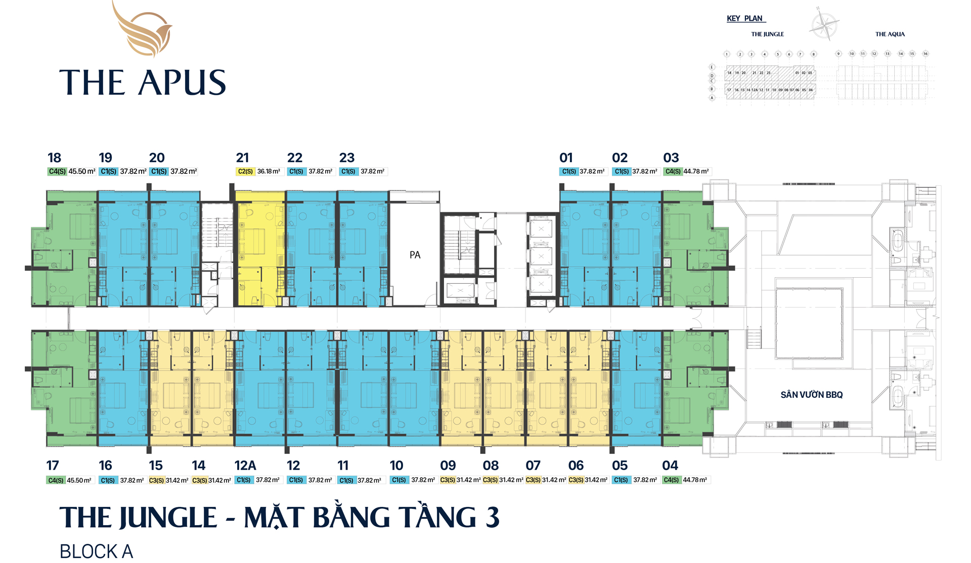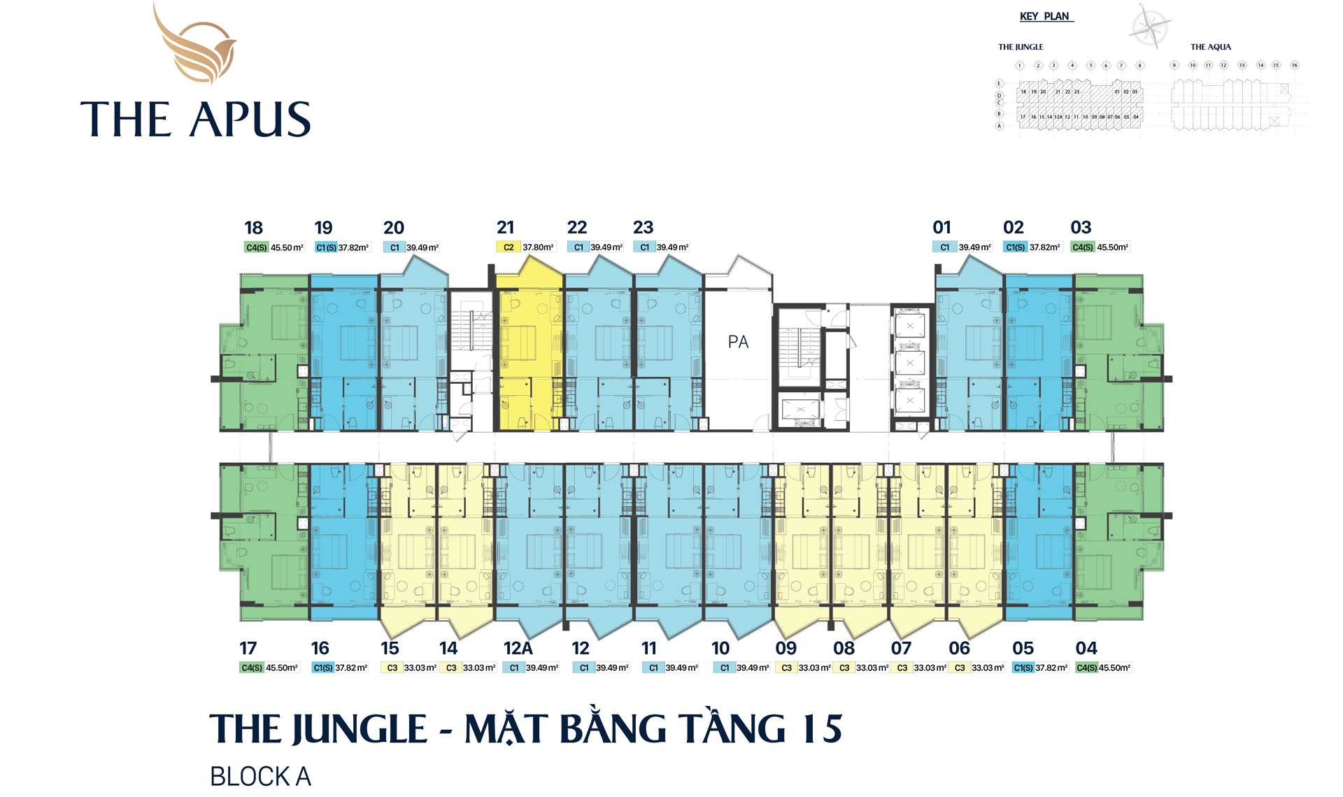 The Jungle là 1 trong 2 tháp căn hộ du lịch của The Apus. Tháp The Jungle sẽ được nhận booking đầu tiên. Tháp The Jungle nằm ở phía trong, hướng vào núi, có tầm nhìn về biển tương đối hẹp hơn so với tháp The Aqua.