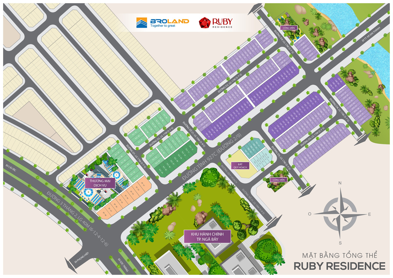 The Ruby Residence Ngã Bảy Hậu Giang được thiết kế 3 loại nền đất cho nhà liền kề, biệt thự song lập, biệt thự đơn lập. Khu liền kề được phân thành 10 phân khu với 150 sản phẩm. Khu biệt thự song lập được phân thành 3 khu với 35 sản phẩm và sau cùng là 8 căn biệt thự.
