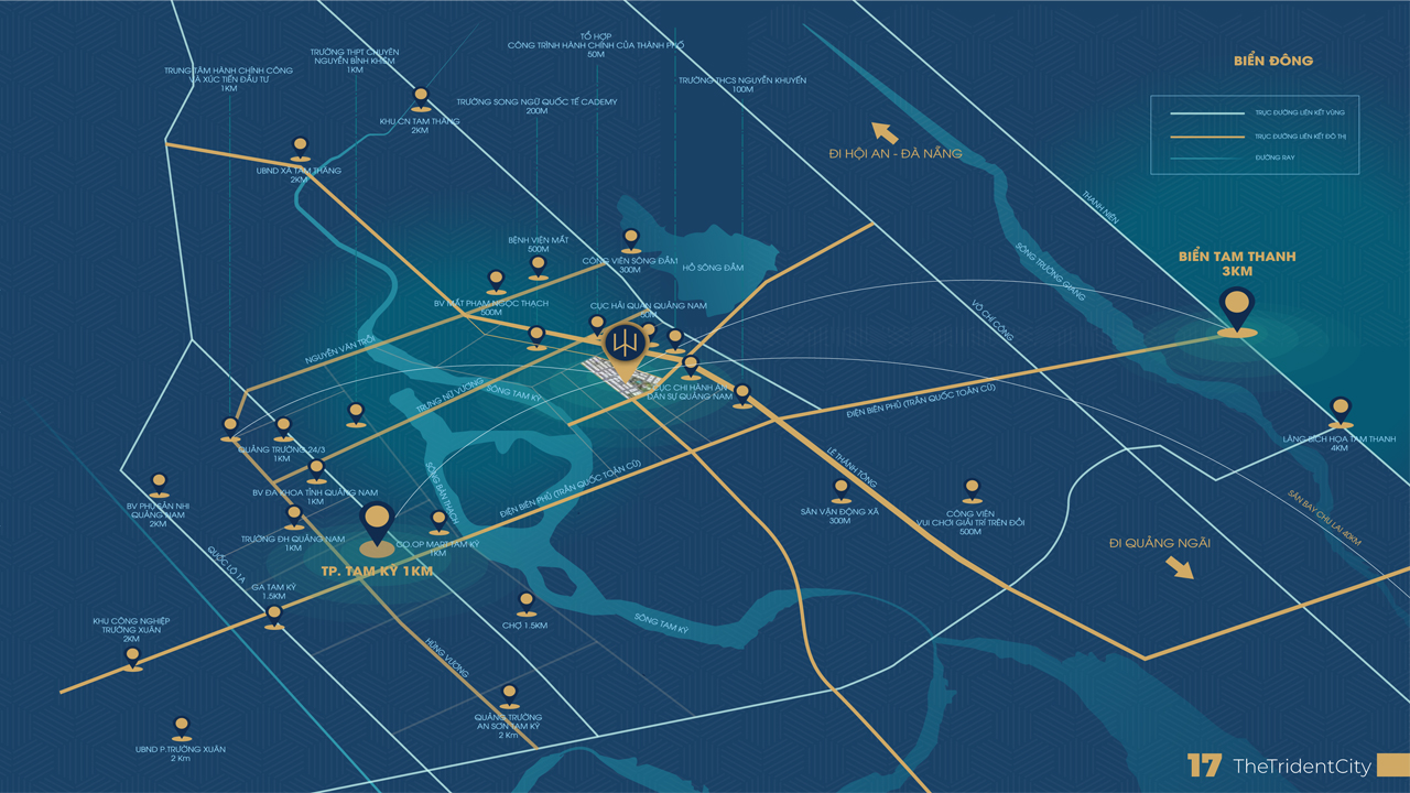 The Trident City tọa lạc trên trục quy hoạch huyết mạch, điểm đến tập trung của hệ thống Chính quyền thành phố Tam Kỳ, nơi “con đường tri thức” Lê Thánh Tông giao thao cùng trục “thương mại” Điện Biên Phủ.