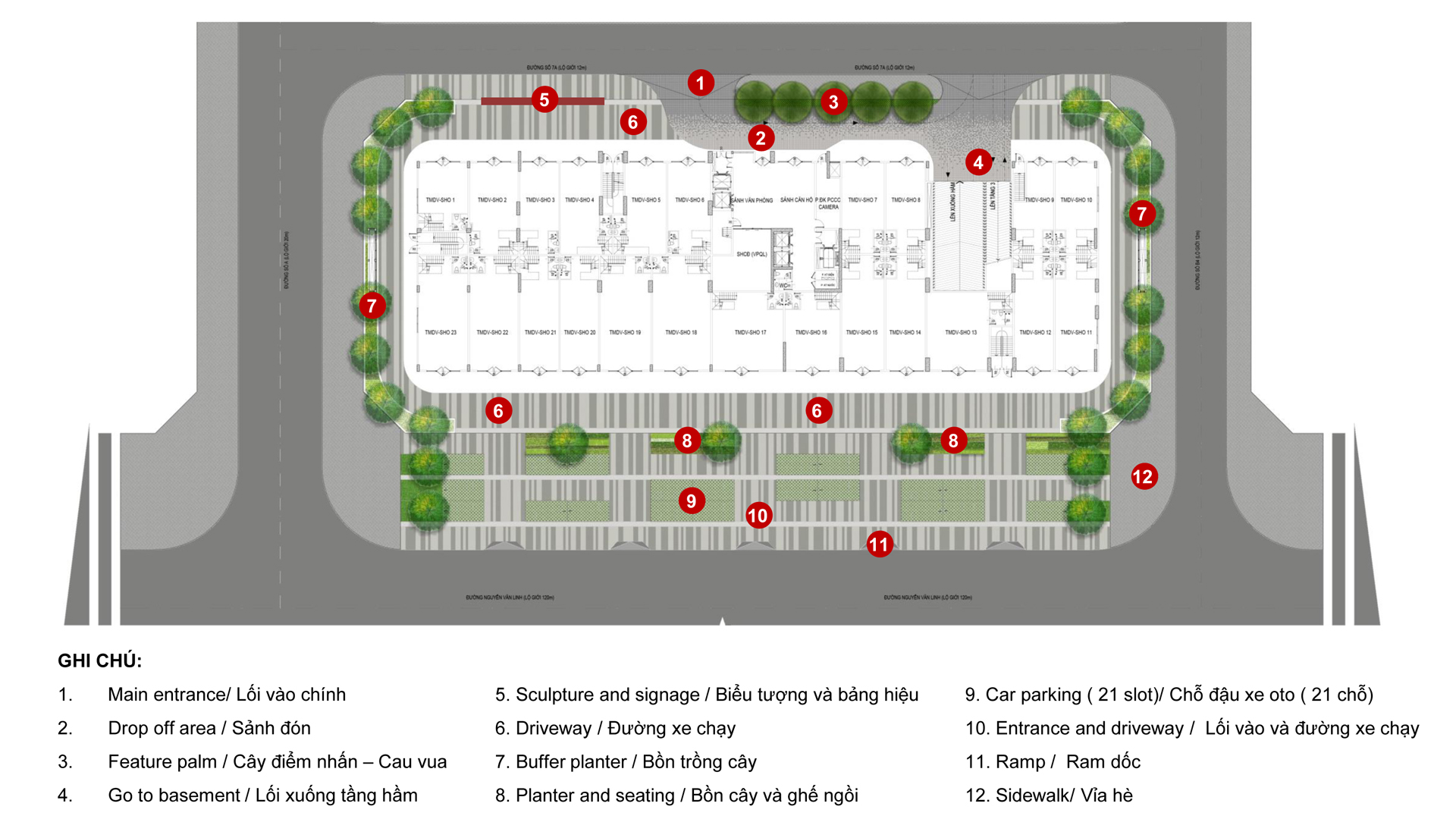 1 tòa tháp cao 21 tầng (2 tầng hầm –  5 tầng TTTM)